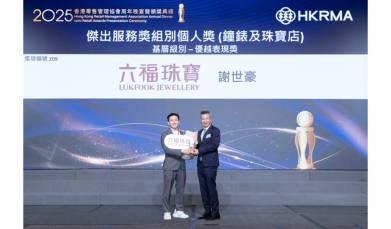 (2026年1月29日)── 六福集團(國際)有限公司(「六福」/「集團」)(股份代號:0590)欣然宣布,集團員工於香港零售管理協會主辦的「2025傑出服務獎」中勇奪佳績,從447位零售精英中脫穎而出,勇奪個人及團隊兩大類別獎項。珠寶銷售主任謝世豪先生於「鐘錶及珠寶店」組別中榮膺「優越表現獎」,並同時為摘下「最具創意隊伍獎」的團隊成員之一,充分彰顯集團在前線服務與團隊協作的卓越實力,亦是對集團人才培訓方面努力的肯定。 六福集團主席兼行政總裁黃偉常先生表示:「今年我們不僅有員工榮膺個人獎項,更勇奪『最具創意隊伍獎』,綜合了員工在親和力、創造力、銷售力及服務力等多方面表現,印證了團隊的協作精神與創新思維,以及在提供專業銷售與顧客關係建立上的綜合實力。這些獎項是對我們前線團隊專業精神的嘉許,也是對集團『六心服務』服務宗旨及人才培育策略的有力肯定。我們將繼續投放資源,培育更多零售精英,不斷提升服務質素,為顧客締造更卓越非凡的購物體驗。」 「傑出服務獎」由香港零售管理協會於1986年創辦,多年來備受業界尊崇,被譽為零售界的「奧斯卡」。該獎項旨在嘉許服務優秀的零售品牌及前線員工,藉此提高香港整體零售服務水平。 六福集團珠寶銷售主任謝世豪先生(左)接受香港零售管理協會活動籌備工作小組主席林國誠先生(右)頒發殊榮 ~完~