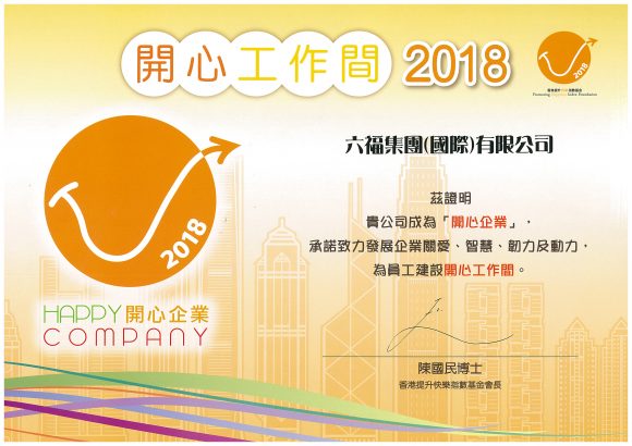 (9 May 2018) — Luk Fook Holdings (International) Limited (“Lukfook” / the “Group”) (Stock Code: 00590) is pleased to announce that the Group was awarded the “Happiness-at-work” label for the fifth consecutive year and again became a “Happy Company” under the “Happiness-at-work Promotional Scheme”.
