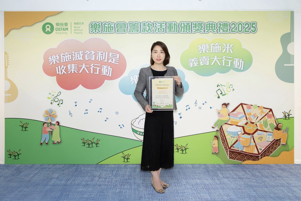 | Ms. Lai Pui Yu, Vivian, Deputy Administration and Human Resources Director of Lukfook Group, received the Fundraising Champion Award for “Oxfam Rice Event 2025” on behalf of the Group |