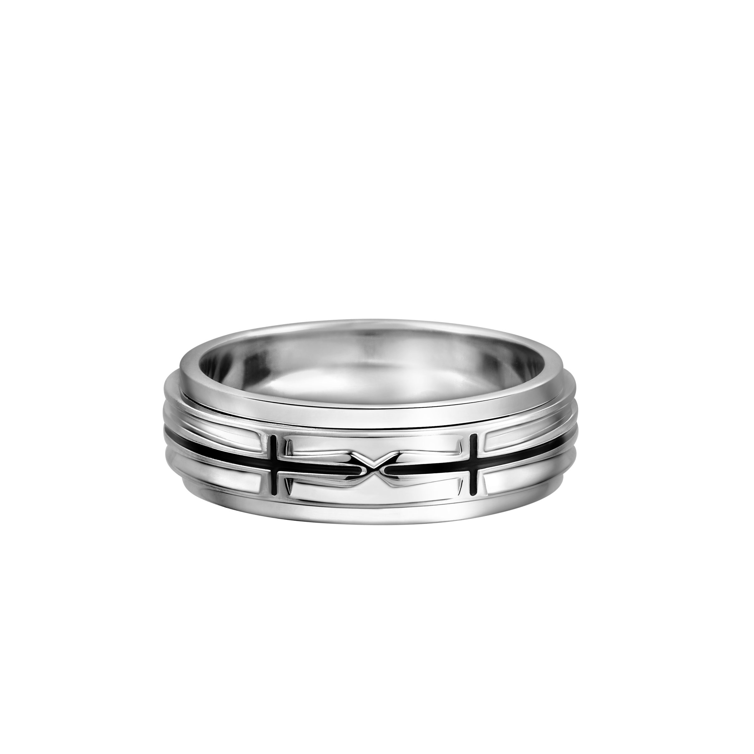 Sophisticated platinum rings with classic cross motifs reveal men’s remarkable strength and power. Black enamel finishes give trendy edges. The middle layer of one of the rings is 360-degree rotatable.