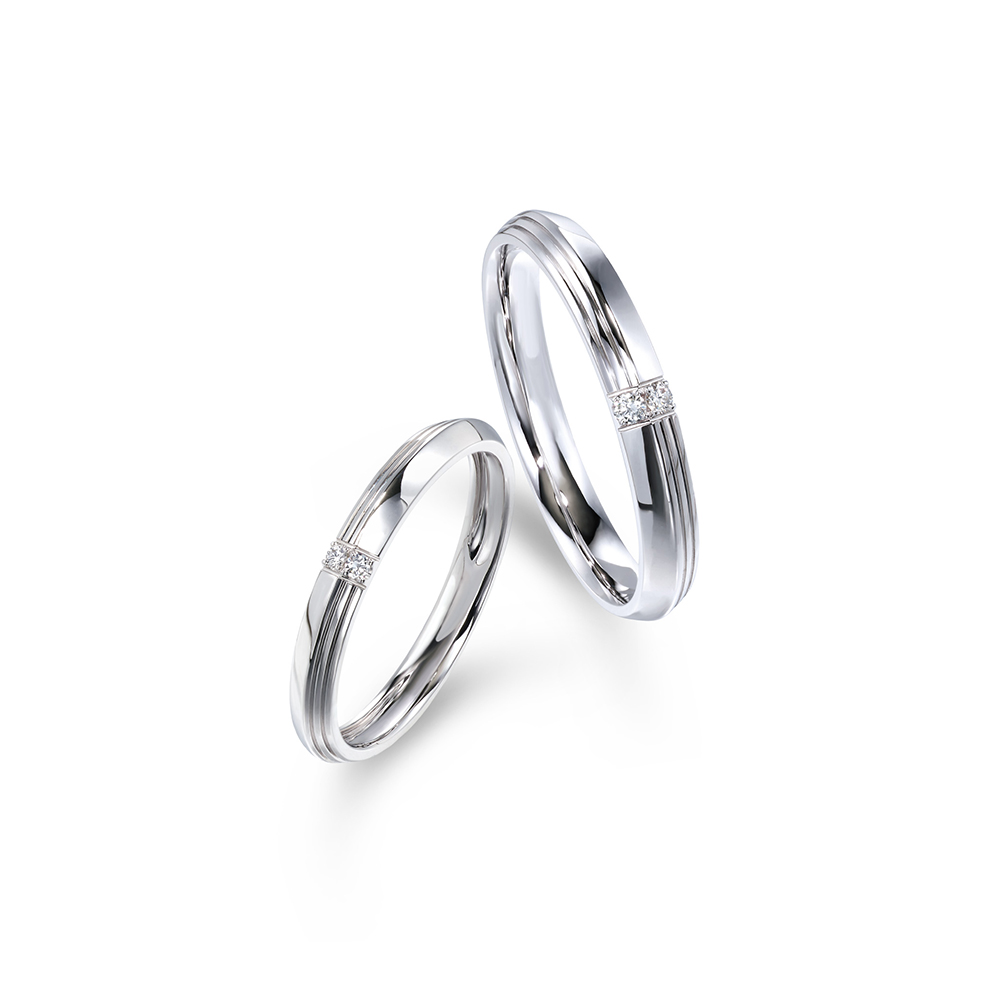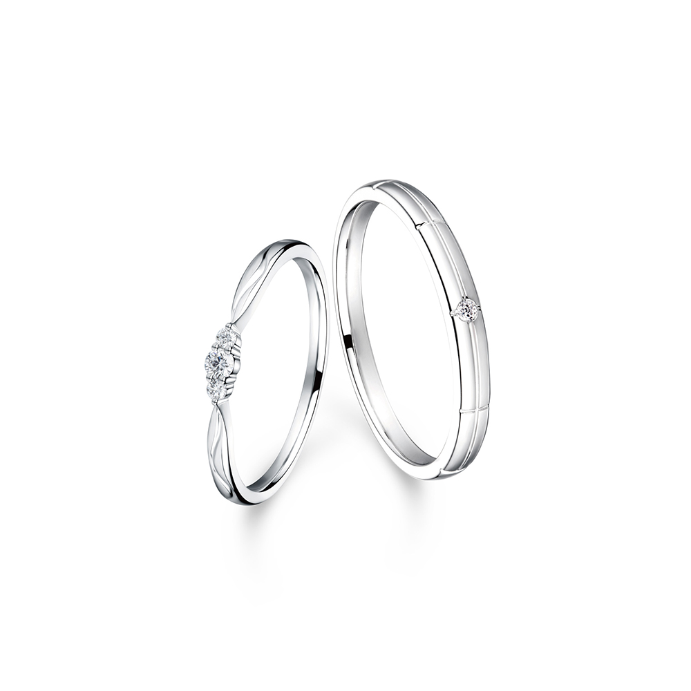 Graceful lines extend on the wedding rings, bearing witness to everlasting love. Clear diamonds seal the lifelong commitment of love and bliss.