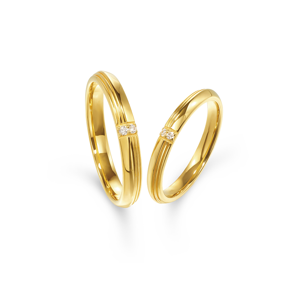 Heartfelt Joy Clean lines capture the essence of pure love. The wedding bands both feature a clear diamond in the centre, symbolising two hearts meant for each other. The simple yet timeless love-infused design always delights your heart. |