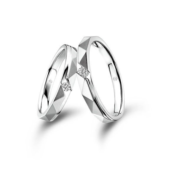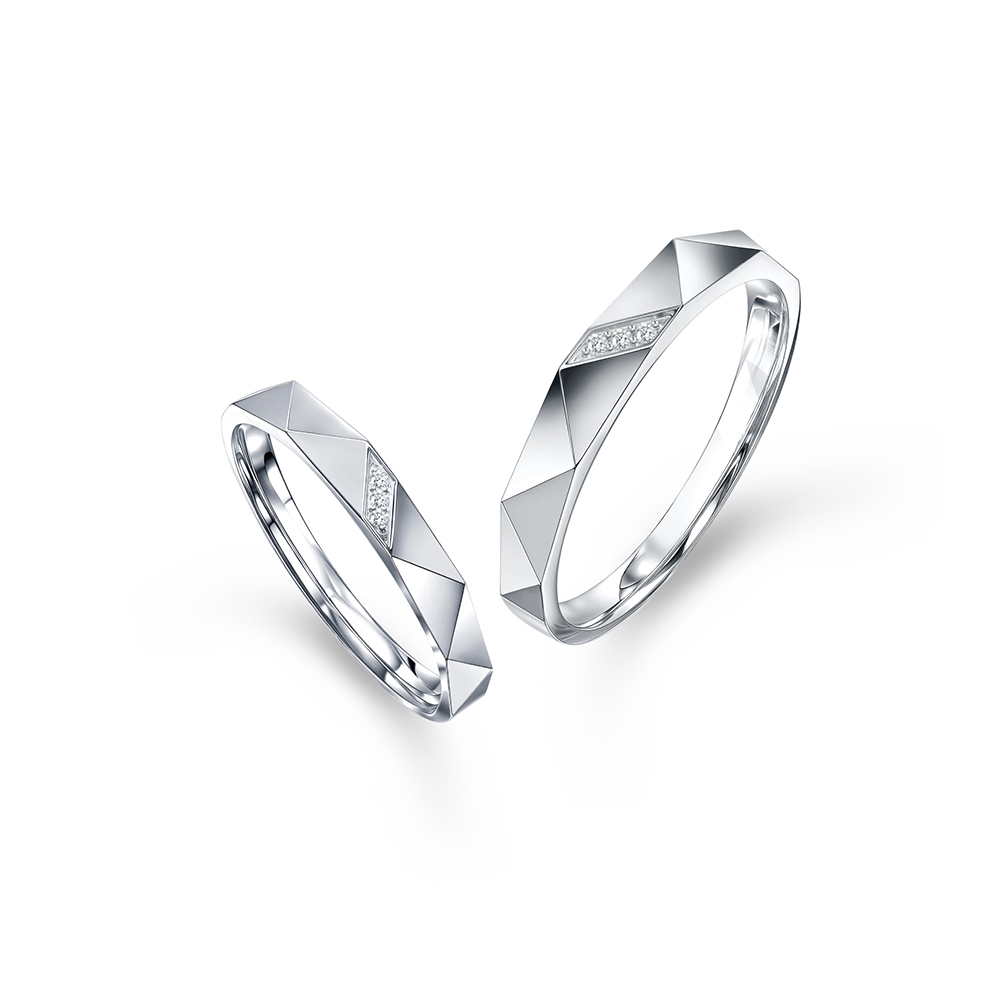 Romantic Moment No matter how much time goes by, our love is as sweet as our first encounter. The rings feature a mix of geometric facets at different angles for an all-out sparkling look. A natural diamond is embedded in the rings for extra glitter, capturing every sweet moment. #Wide band option available |