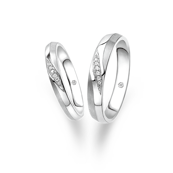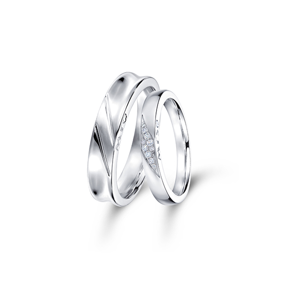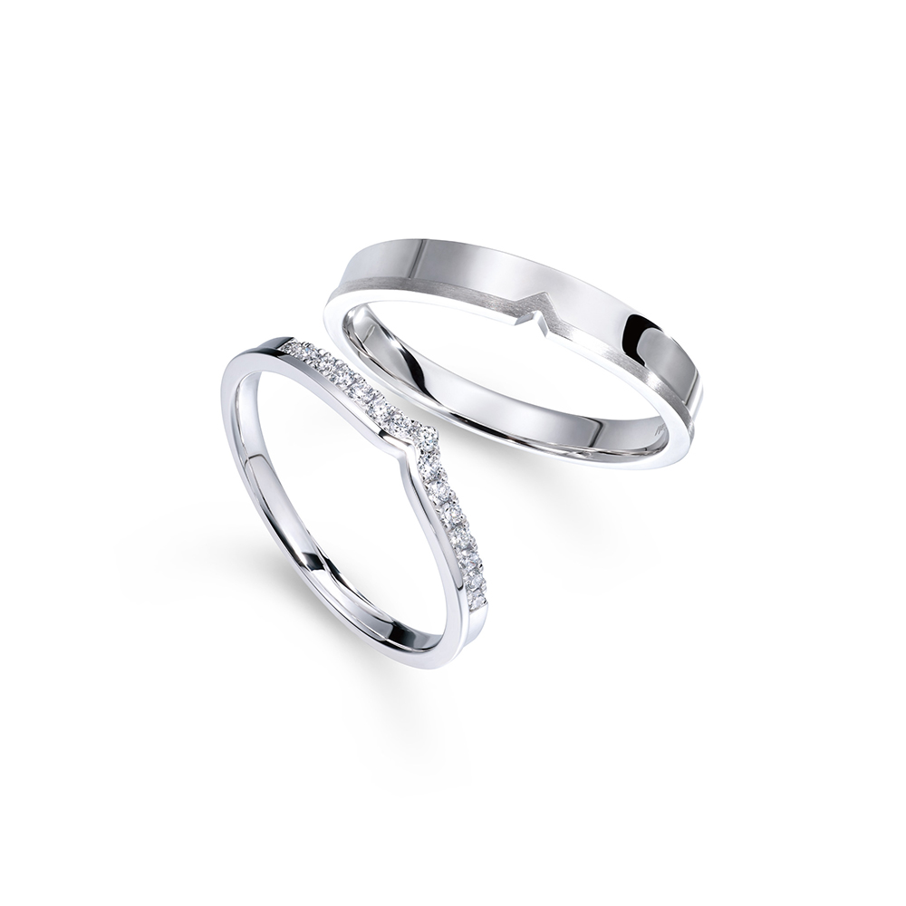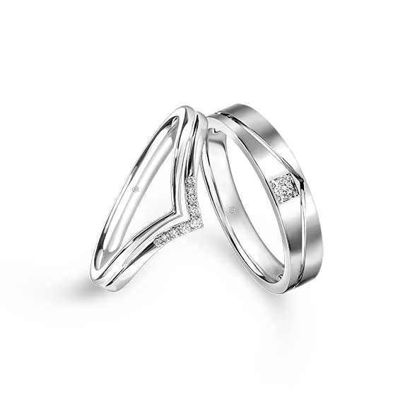 Love with Heart The wedding rings feature the simple V-shaped design. The women’s ring is crafted with delicate curves mirroring a romantic heart, and set with shimmering diamonds, while the men’s ring comes in stylish design. Show your heartfelt love with these chic wedding rings. |
