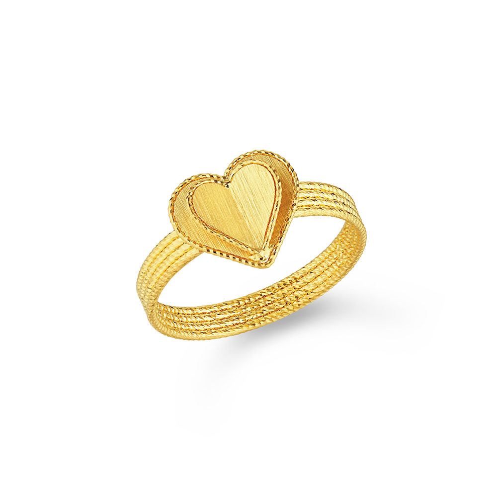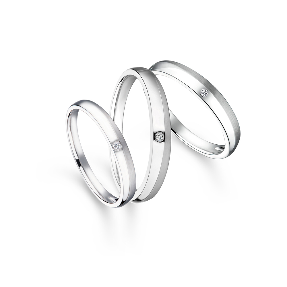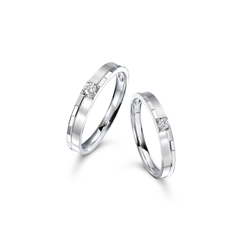 Love in Heart True love comes from the heart. A sparkling diamond is delicately cradled in a U-shaped setting at the centre of the simple yet textured bands, evocative of the pure love from the heart. #Wide and narrow band options available |