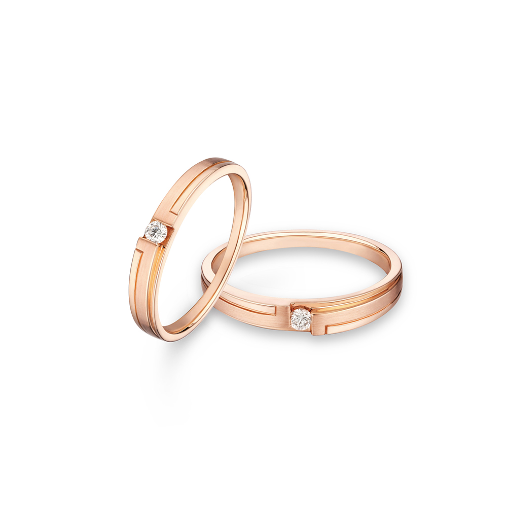 Love Companion These simple yet stylish rings feature layered parallel lines intricately interwoven, reminiscent of two entwined hearts. Dazzling natural diamonds set on the bands illuminate the couple's journey of bliss and bear witness to the promise of eternity and companionship. #Also available in a lightweight design in 18K gold with diamonds |