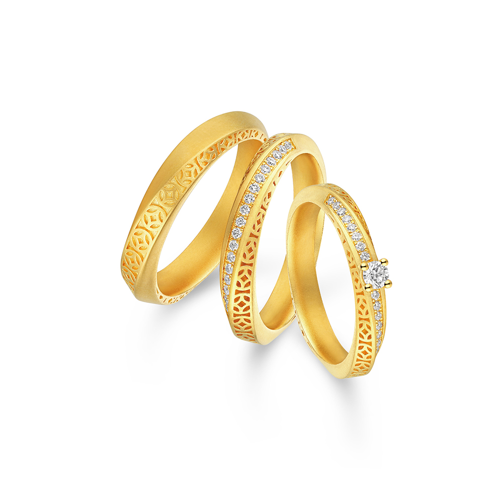 Put on your wedding gown and exchange the vows of lifelong love with your beloved. Lukfook Jewellery specially introduces a selection of “13” sets of Eastern gold wedding jewellery and graceful diamond wedding jewellery to illuminate your blissful marriage.