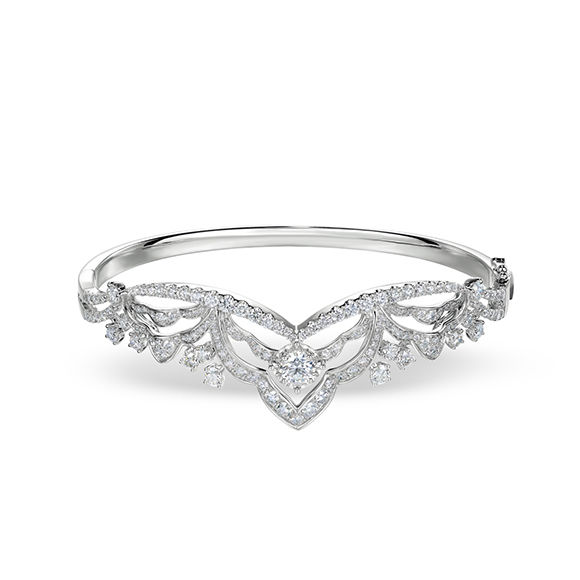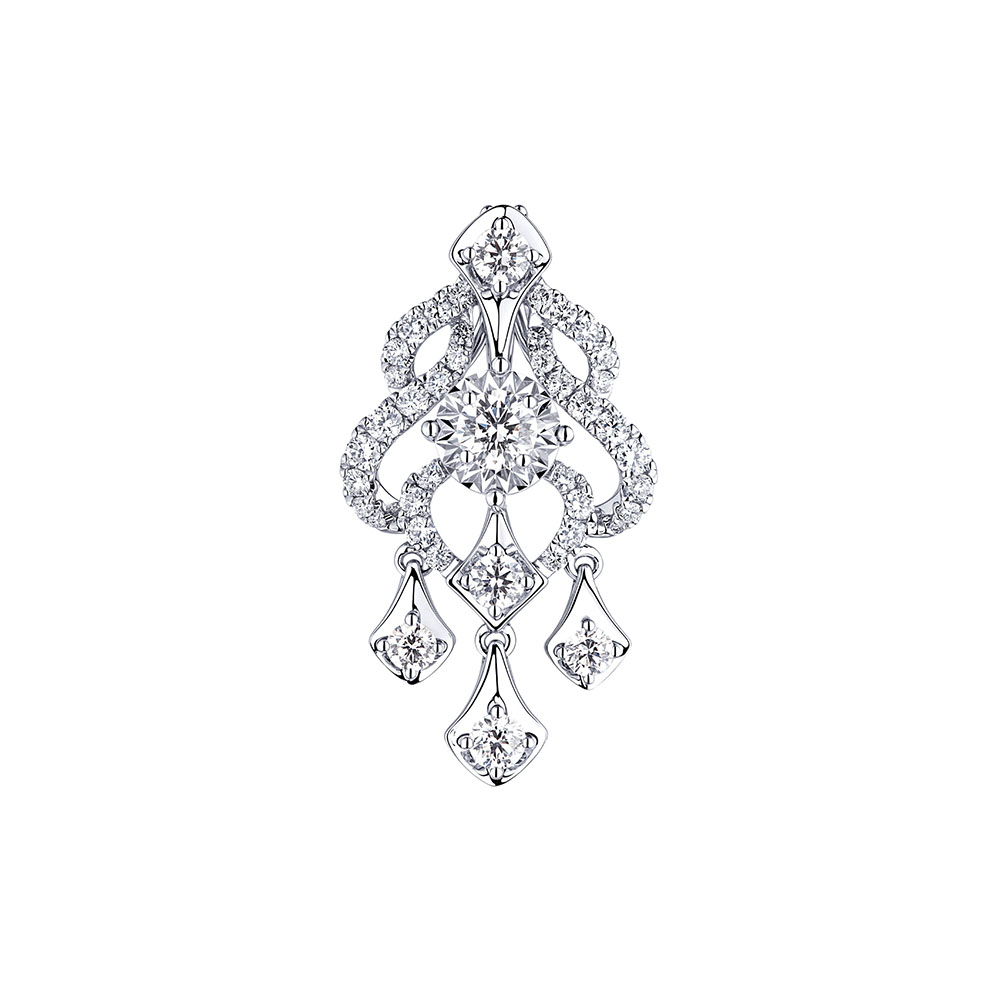 The “cloud collar” in traditional Chinese costumes is combined with dazzling diamonds to create a unique interpretation of love and romance. Sparkling diamonds and aesthetic lines are woven into a lace cloud collar, showcasing the Oriental beauty. Shiny diamond setting gives the diamond jewellery a more glamorous look. The necklace can be detached and worn as a simple yet gorgeous pendant to match different occasions.