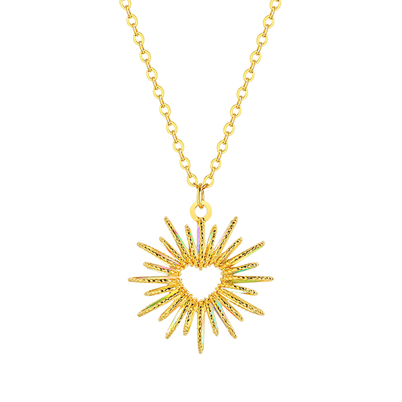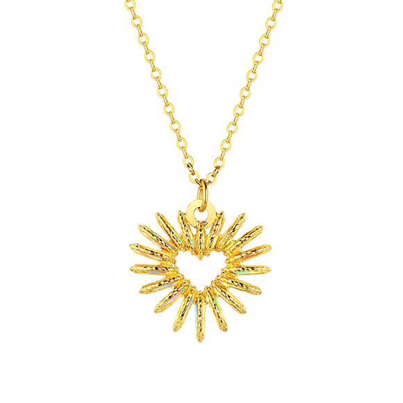 The openwork heart reflects the amazing light effect. Three-dimensional carved lines are combined with the new-generation of radiant colours finish to create a captivating visual feast of light and shadow on the glamorous gold jewellery. Gold carved facets shimmer with the fire of love, adding heartfelt warmth and enchanting glamour to your gift. Each piece is a special testament of love. With radiant finish on the front and matt finish on the back, the necklace can be worn double-sided to create two different styles.