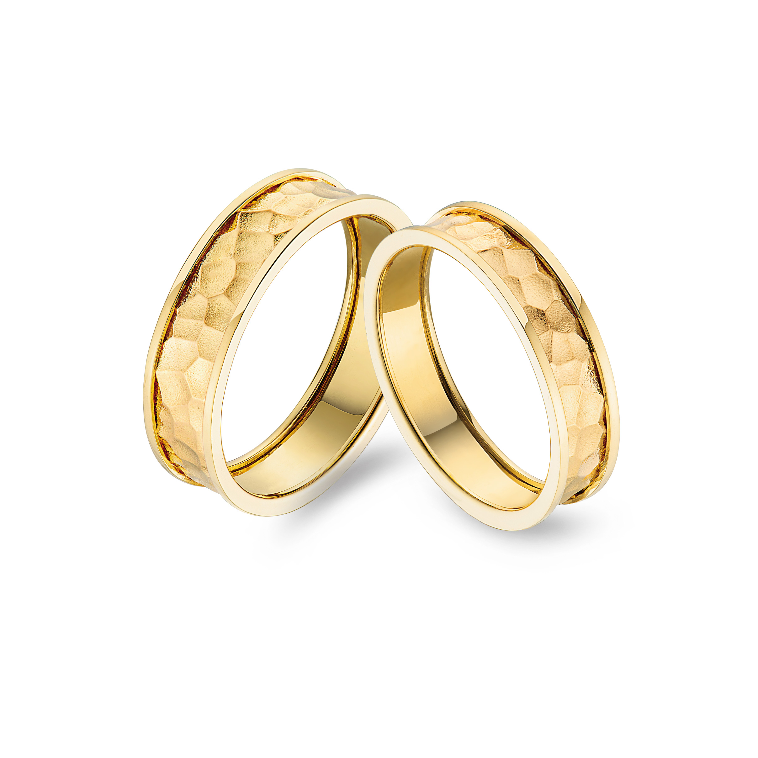 Love is passionate and sentimental. Love makes your heart skip a beat when looking at his eyes. He is that special someone for you. Designers use karat gold and hand hammering technique to create stylish hammered finish on the ring surface. These retro chic rings are a simple expression of free spirit. Featuring the design concept of following your heart in love, the rings embody different aspects of love including freedom, individuality and tolerance. The couple rings are available in sparkling “original yellow gold colour” and stylish “black electroplated colour”.