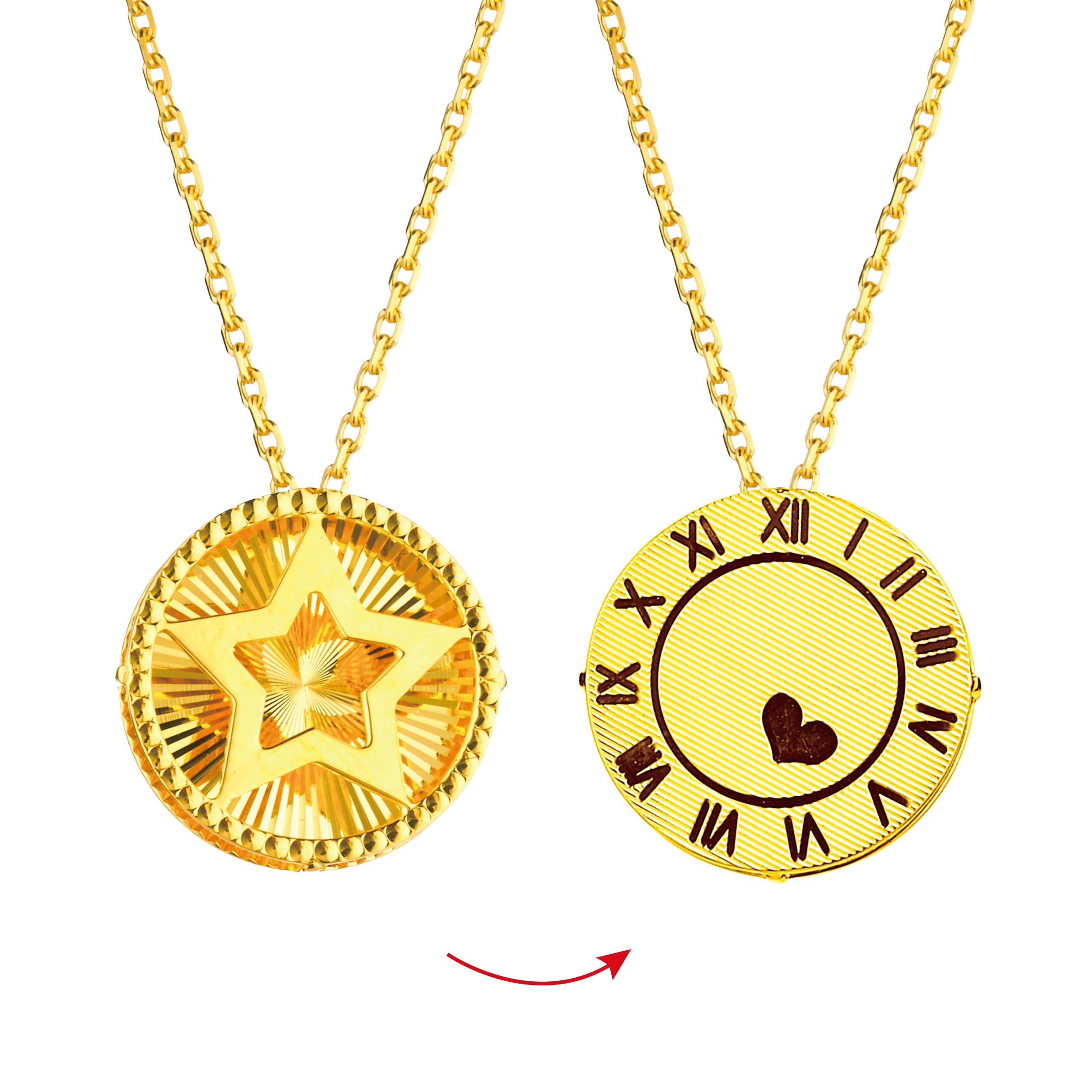 Luminous stars on the night sky guide your way. The necklace features the five-pointed main star in a ring surrounded by finely crafted beads that shine like twinkling stars. Delicate diamond cut finishing at the bottom brings out the unique lustre of gold, revealing the wearer’s chic taste and sophisticated elegance. Add the star galaxy to your collection to light up your brilliant life.