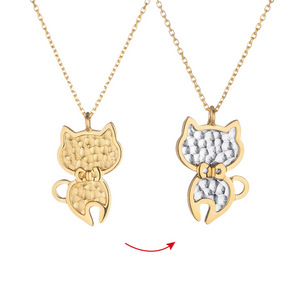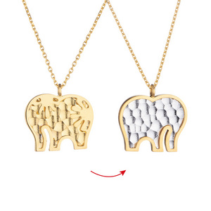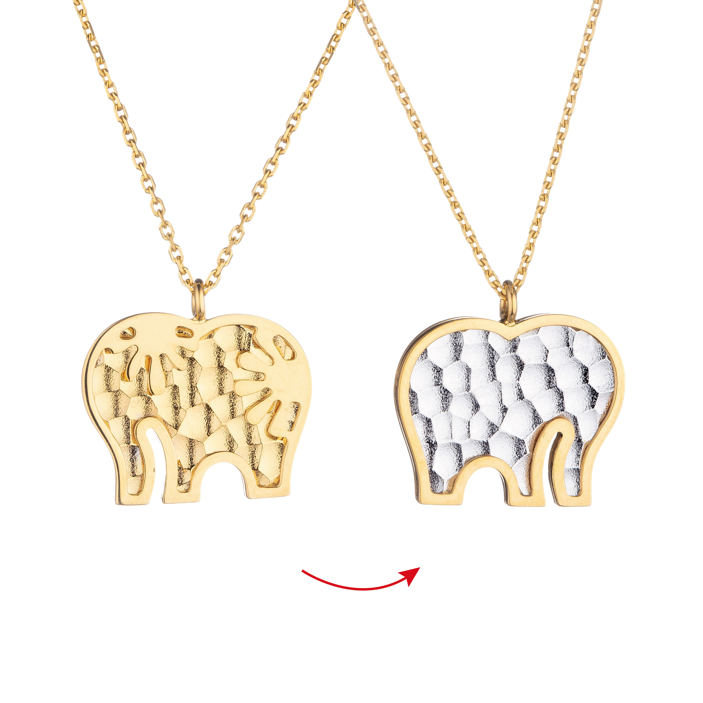 Lovely animals gather for a fun party. Frisky yet elegant cat captures your heart. Smart rabbit brings you fun and joy. Cute elephant delivers the best wishes for luck and fortune. Designers craft these playful animals with exquisite hammered finishing. Black electroplating enhances the colour effect. Show your contemporary glamour with these chic double-sided necklaces.