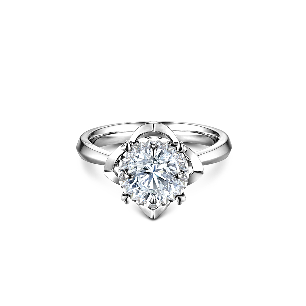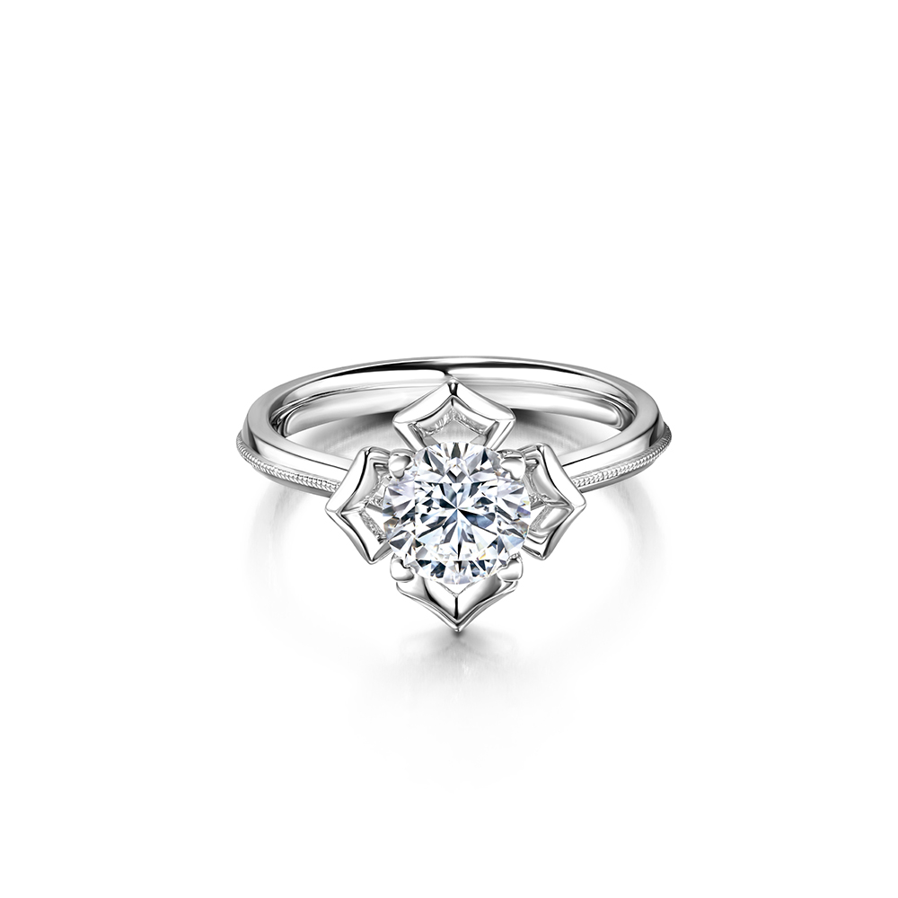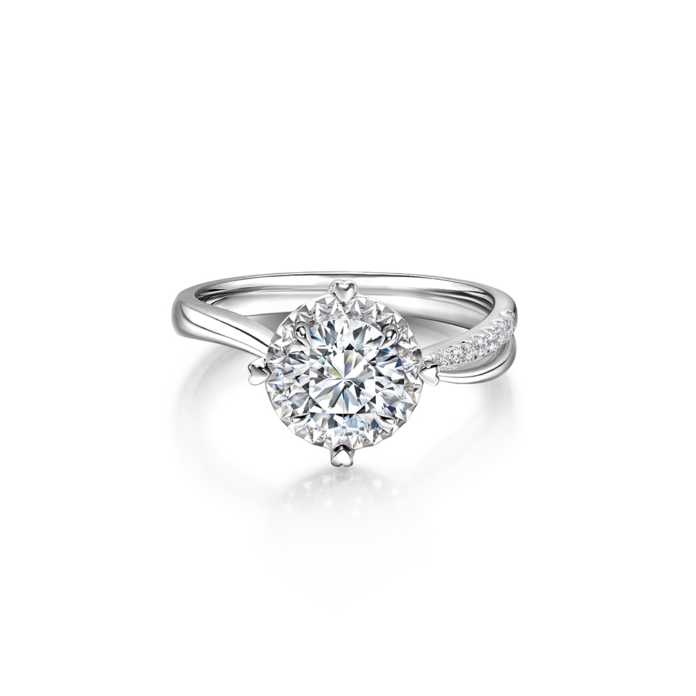 When I meet you, my heart beats faster and love blossoms in my heart. Love makes me shine with sparkling beauty. Designers use simple lines to capture the beauty of flower buds. Four sweet hearts at the bottom of the setting glow with love and romance. “Shiny Diamond Setting” enhances the visual effect of the main stone, bringing out the sparkle and brilliance of the love-infused diamond.