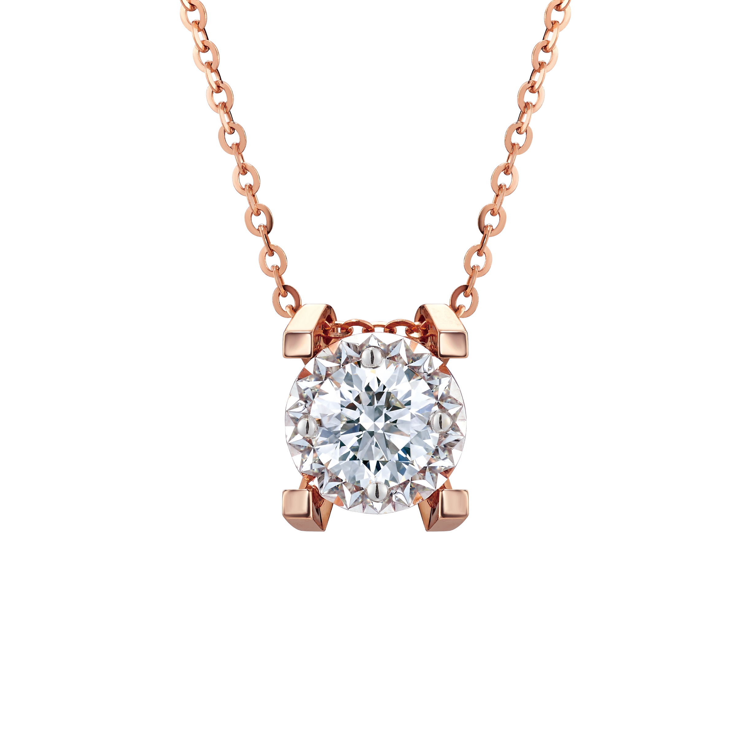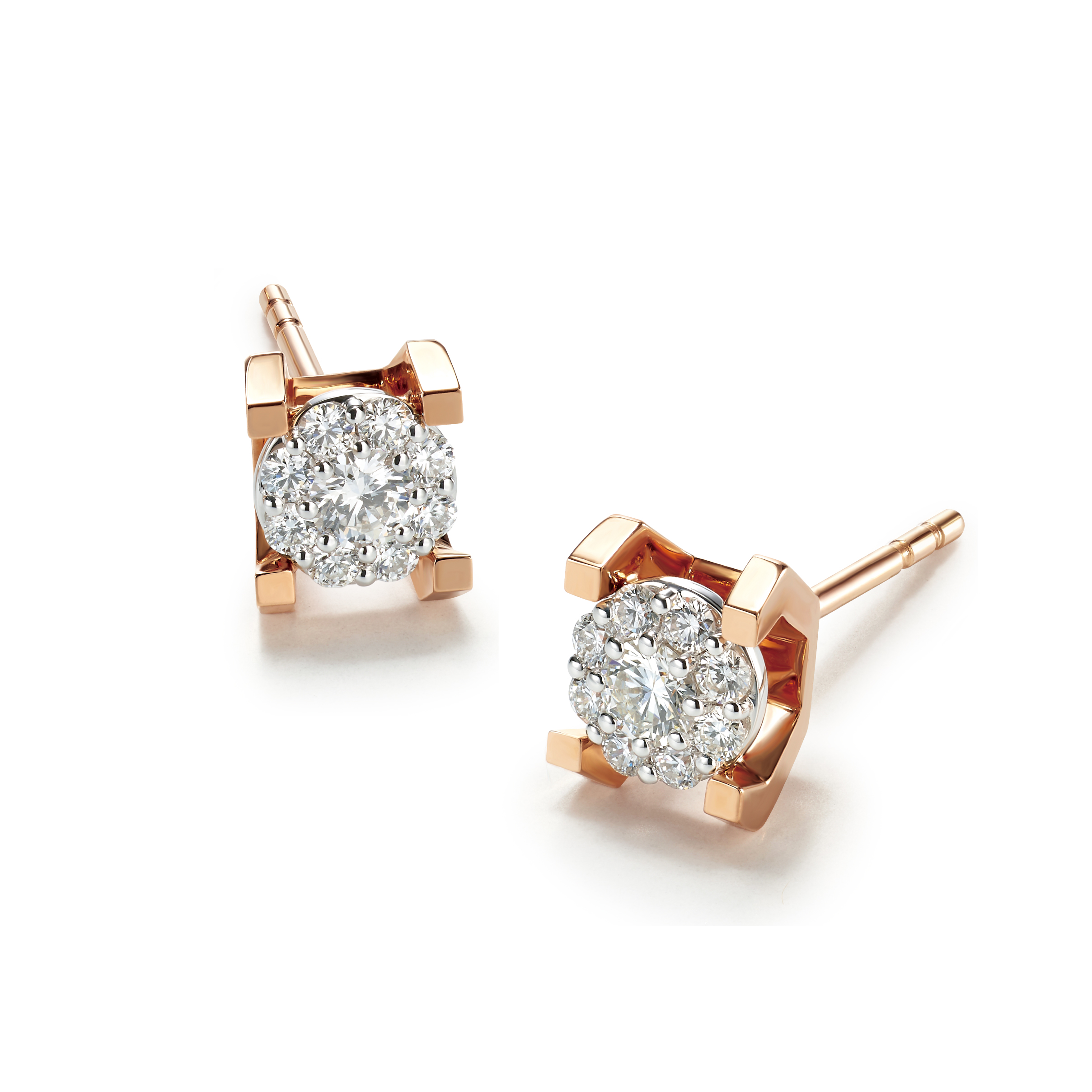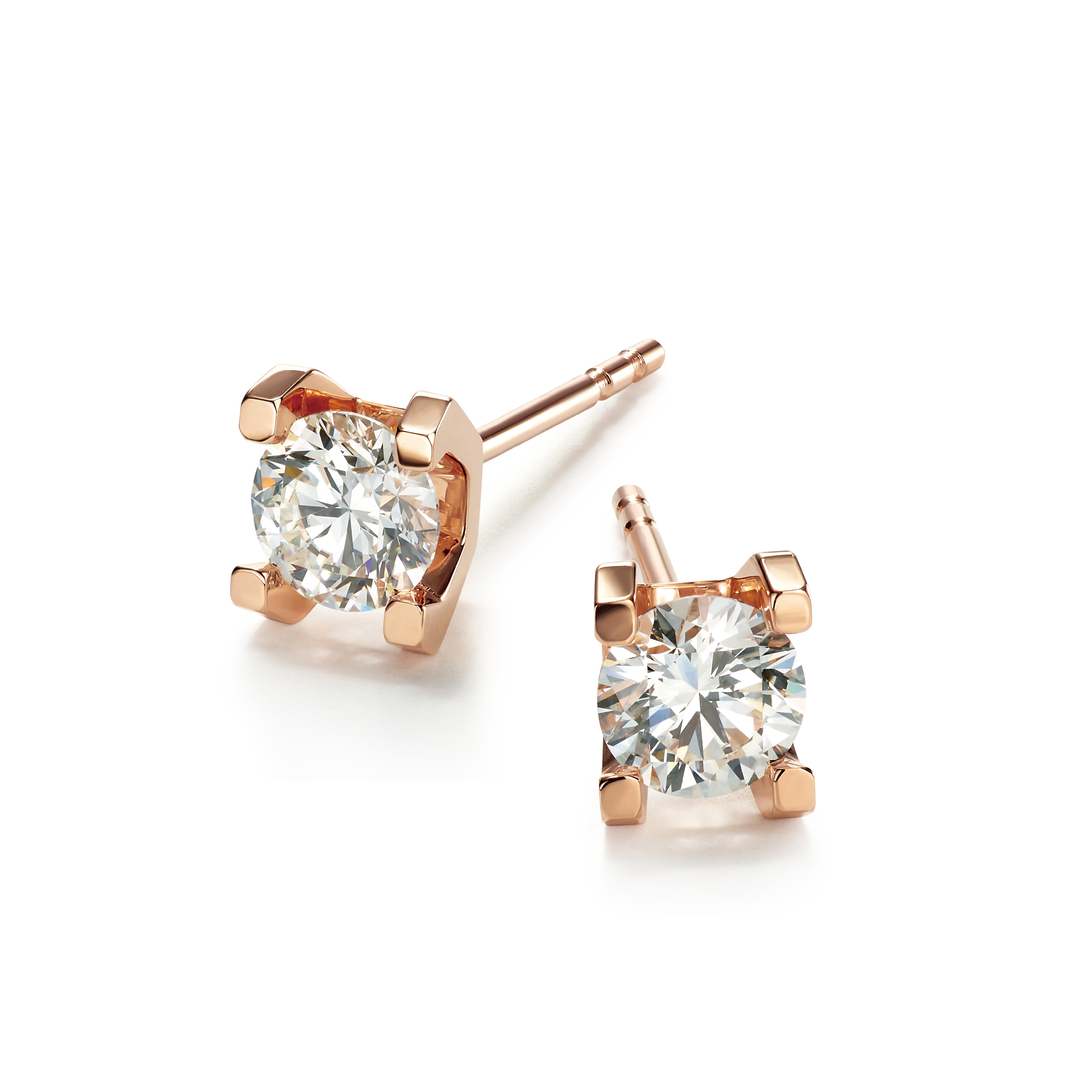 Brilliant diamond complements rose gold to create these classic fashion icons that dazzle with enchanting glamour. Our patented shiny setting blends elegant 18K gold with romantic diamond to enhance the glittering effect of the main stone, lending a glamorous edge to your sophisticated and confident look.