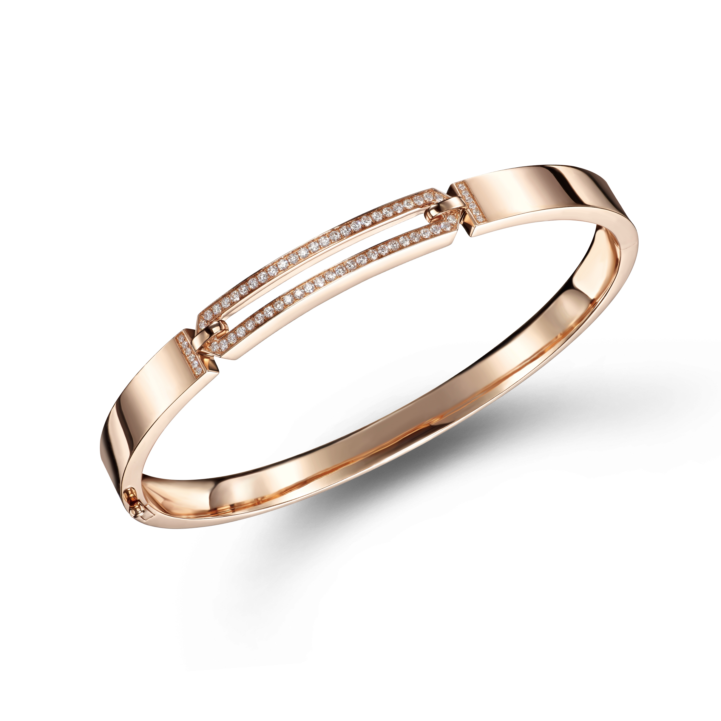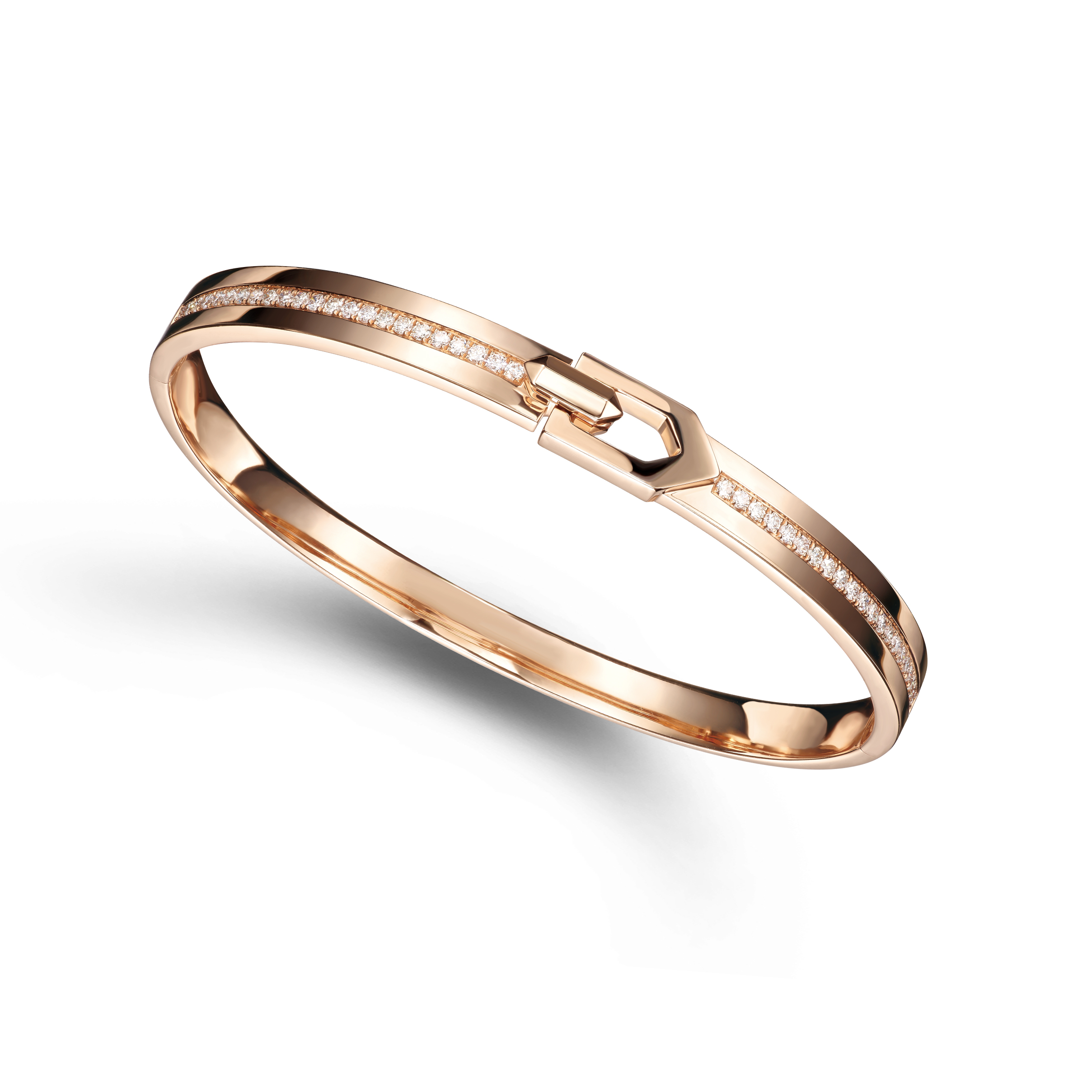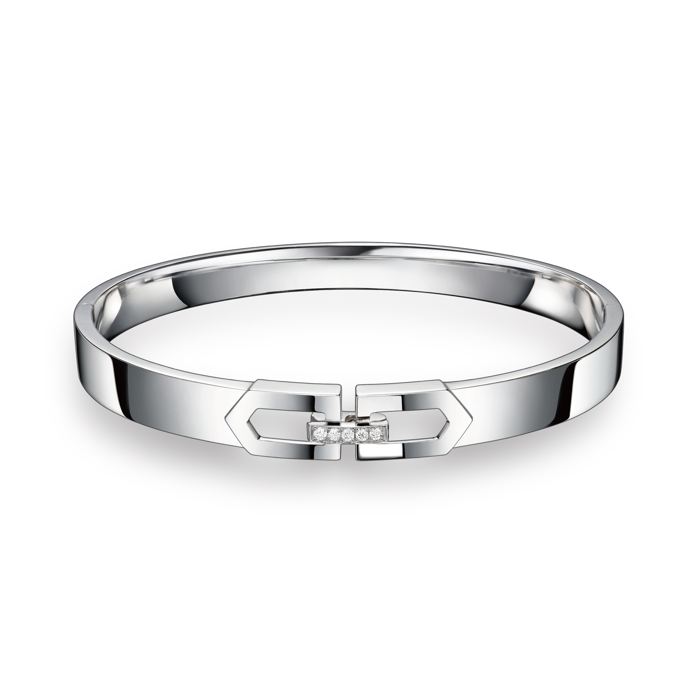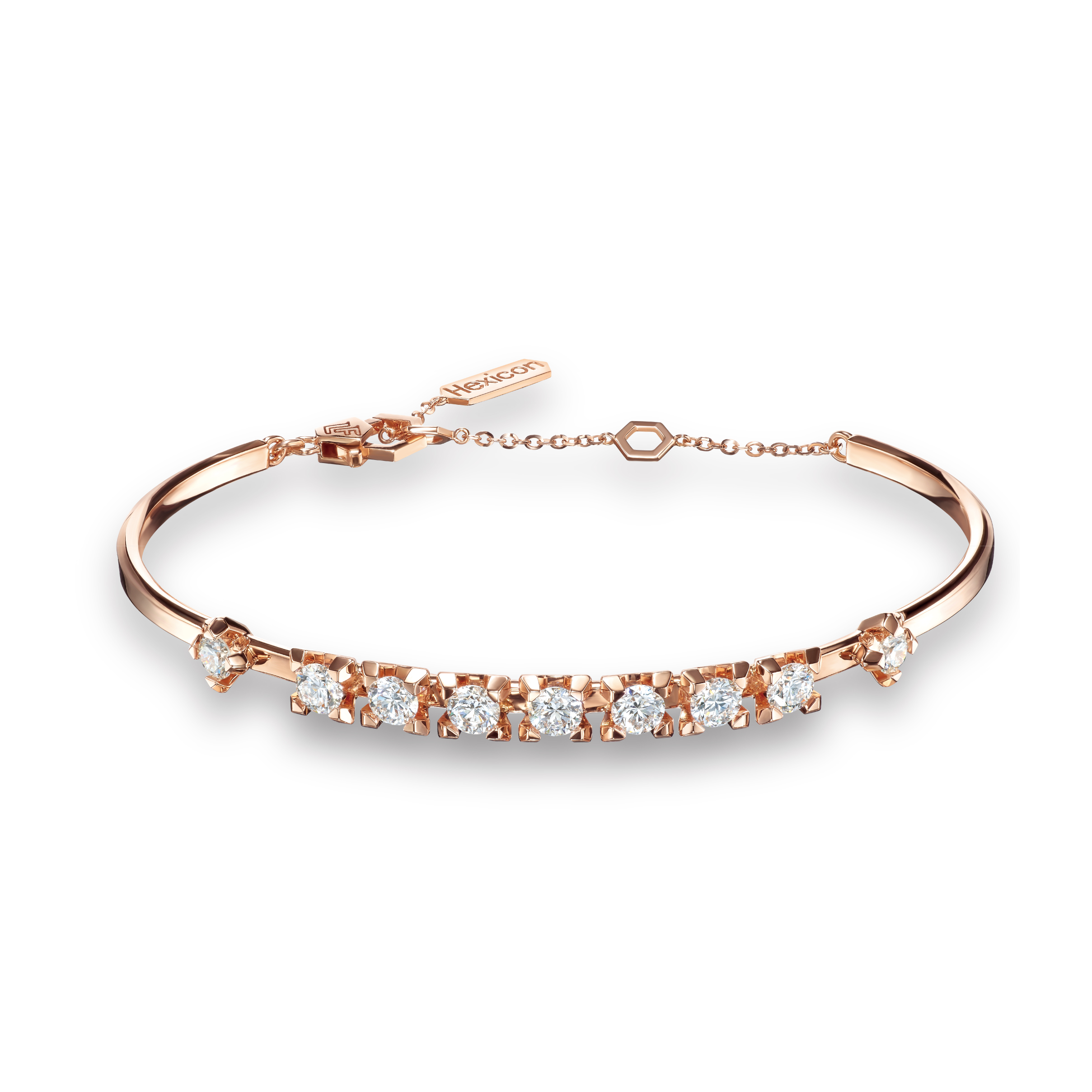 This exquisite bangle glistens around the wrist. Nine diamonds wrapped in simply stylish hexagonal design capture the moments of love. The sparkling brilliance of diamonds is fused with the natural beauty of 18K gold, evocative of the lifelong bonds of love between lovers.