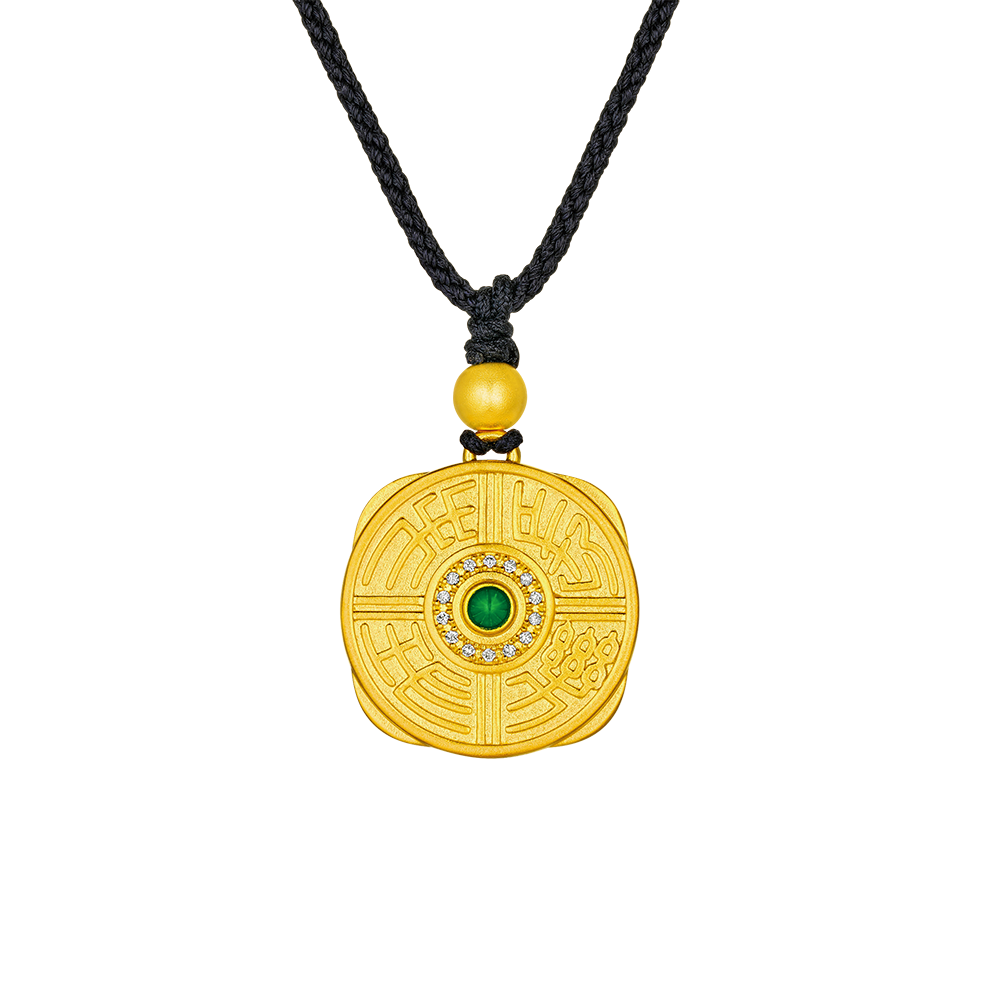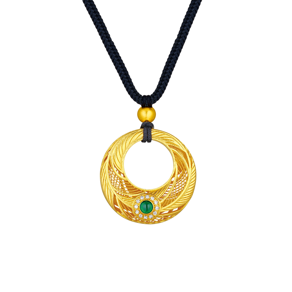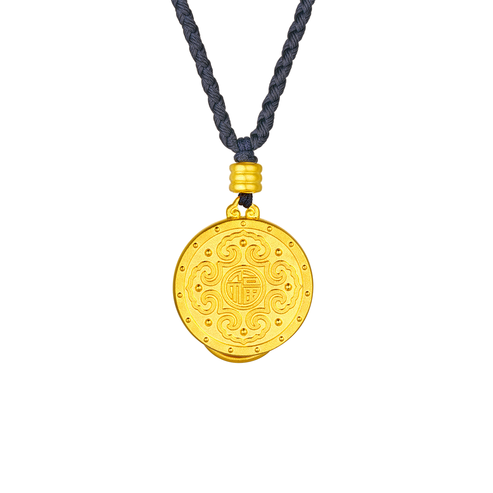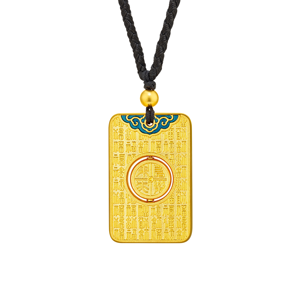 A swallow flying into your house is believed to bring luck and happiness to your family. The design takes inspiration from the eaves tile and the concept of swallow flying into the house, symbolising a happy family life. Auspicious cloud patterns are crafted with enamel. The pendant features the "fortune" characters on the front, and an openwork eaves tile in the centre depicting the swallow and the Chinese blessings for "endless happiness", signifying the best wishes for eternal joy and bliss.