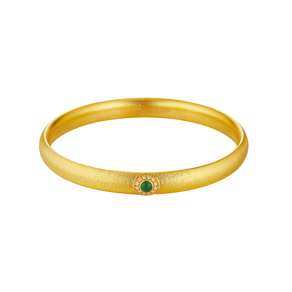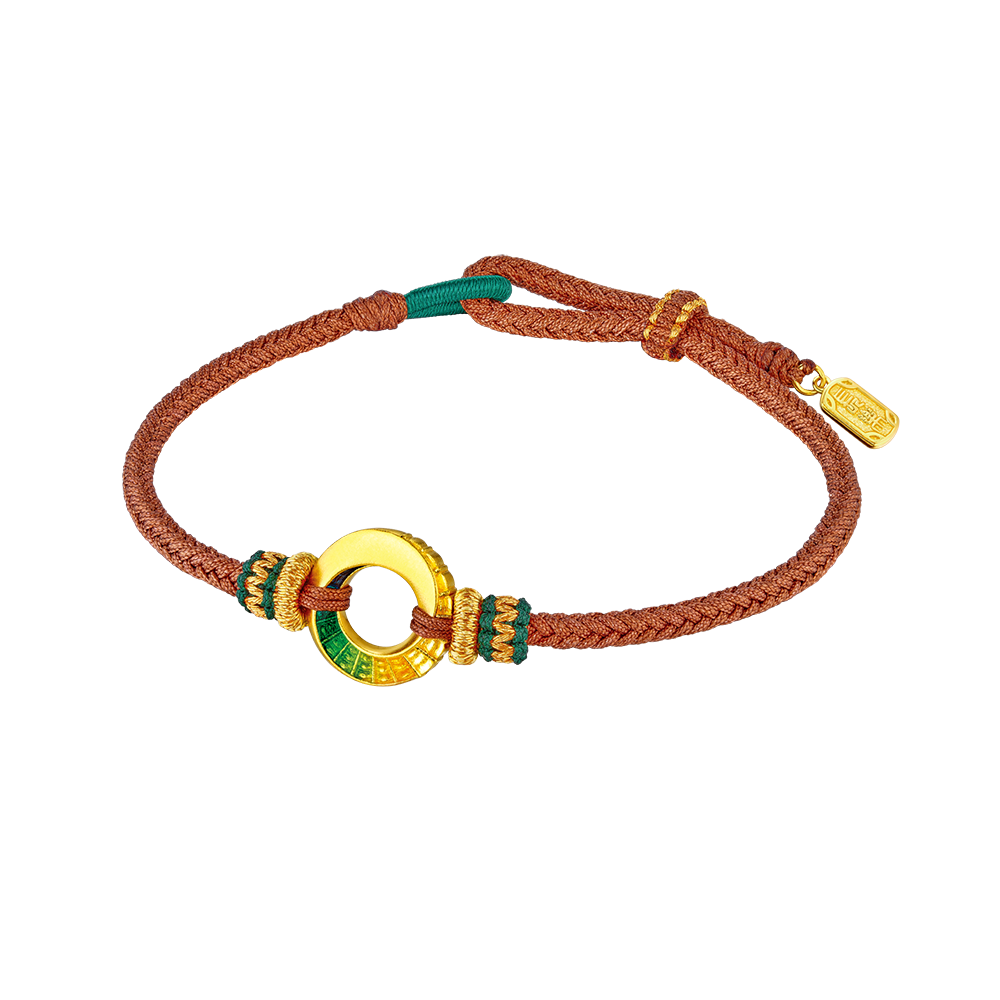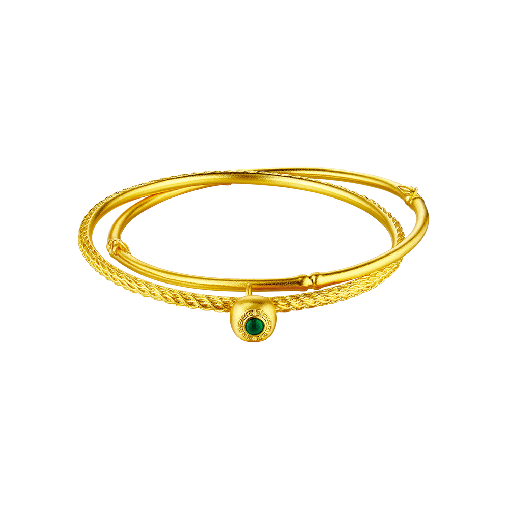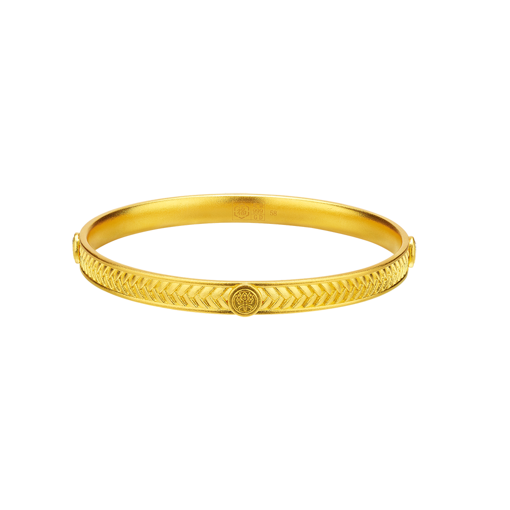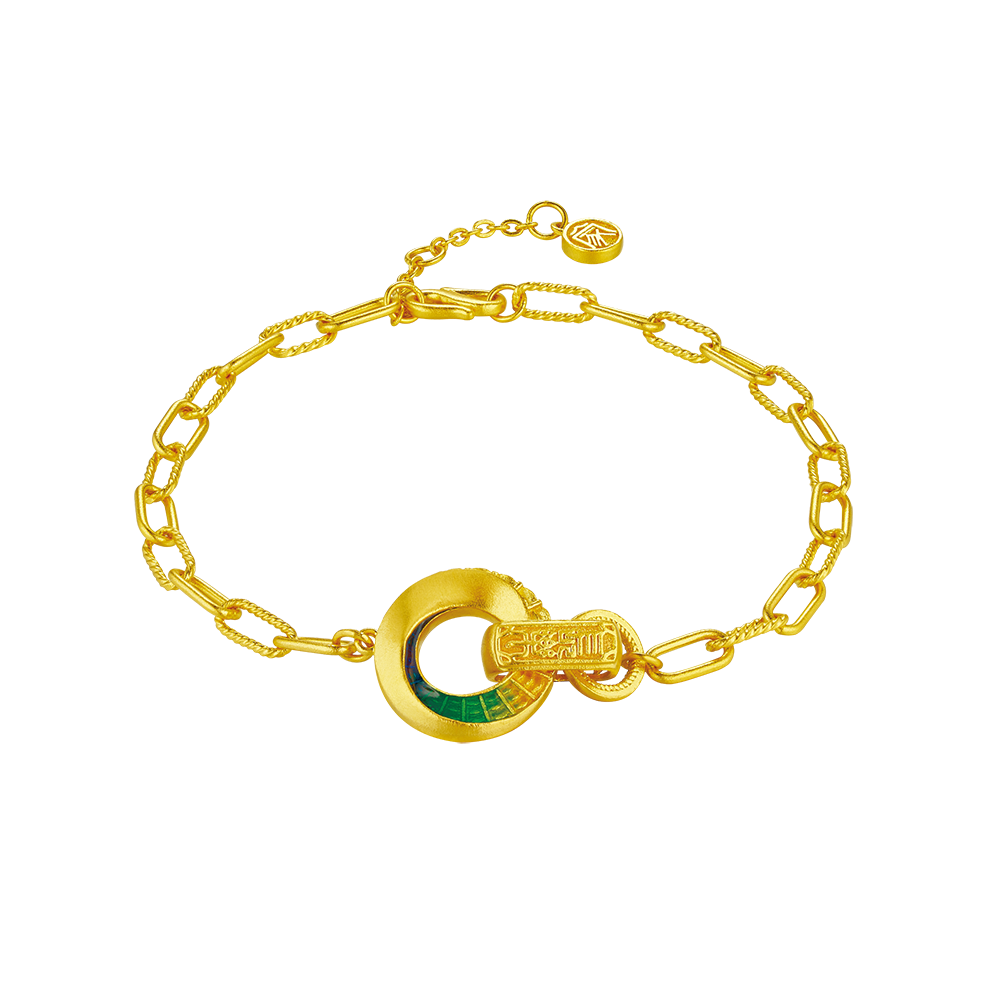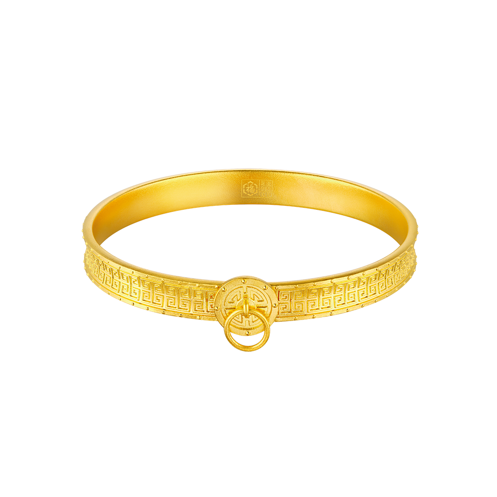 The eaves-tile-inspired bangle is carved with four Chinese characters which mean "endless happiness" in four different positions to pray for peace, luck and joy all year round.