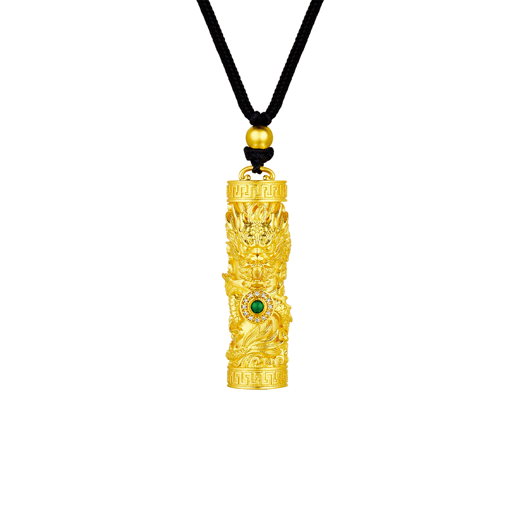 Dragon is traditionally regarded as the most auspicious creature that brings forth good fortune. The majestic dragon is vividly depicted with traditional gold crafting techniques and accented with emerald green enamel and sparkling diamond details, evoking the Chinese civilisation history and invoking the blessings for success, peace and bliss.