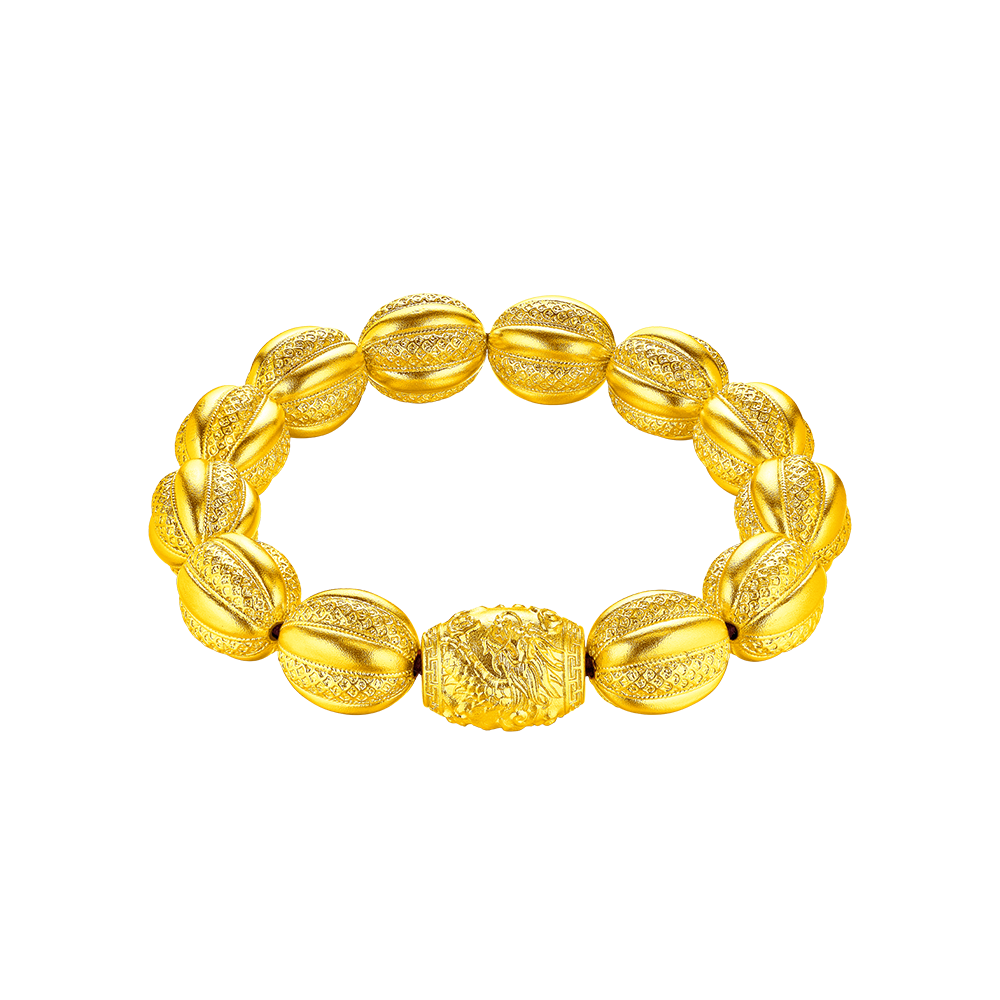 Dragon has been honoured by the Chinese nation since ancient times. Pumpkin is a symbol of affluence and fortune. Dragon motif is fused into the pumpkin-shaped beads, meant to protect the wearer from evil and bring good luck.