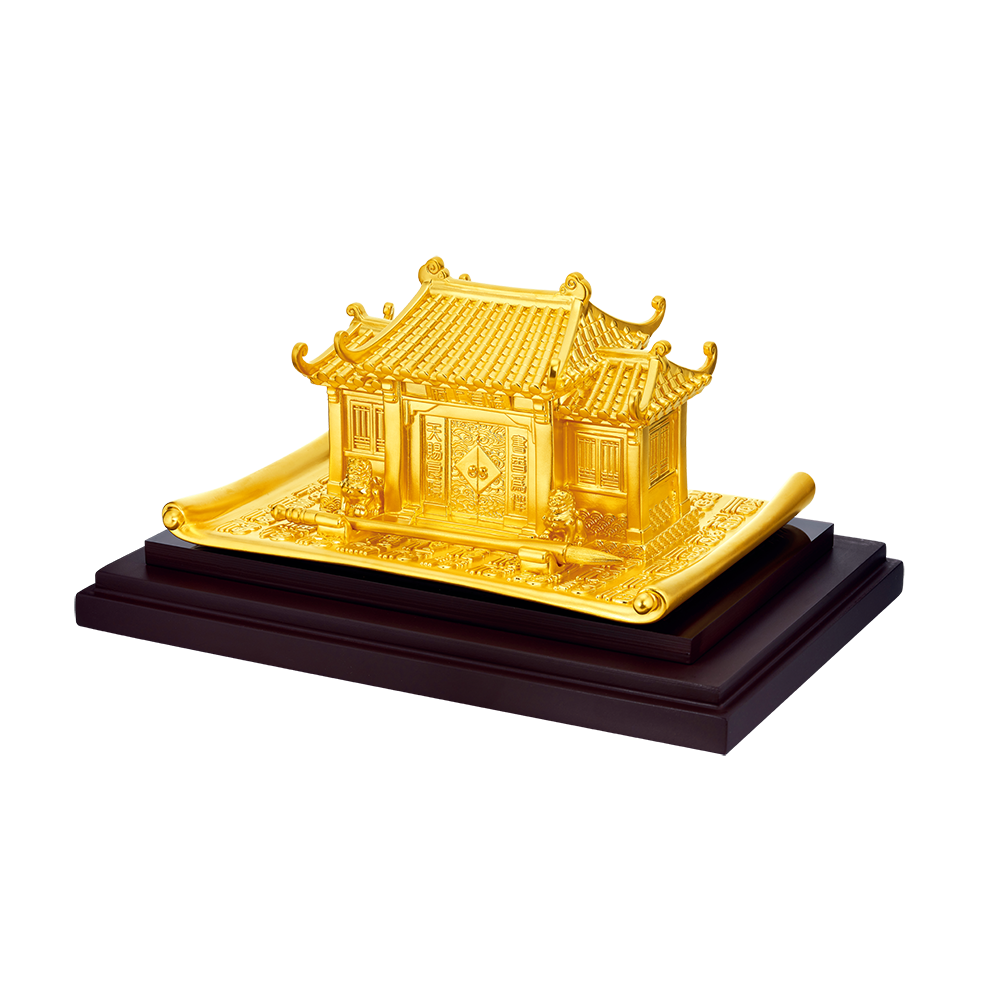 As the Chinese saying goes, "There is a gold house and graceful lady in the books". The "gold house" in books denotes that diligent study leads to academic success and remarkable achievements. The "Gold House" figurine depicts a golden house on an opened scroll with a golden writing brush placed in front of the house doors and a pair of golden lions guarding the doors, expressing the hope for academic success, successful career and affluent life.