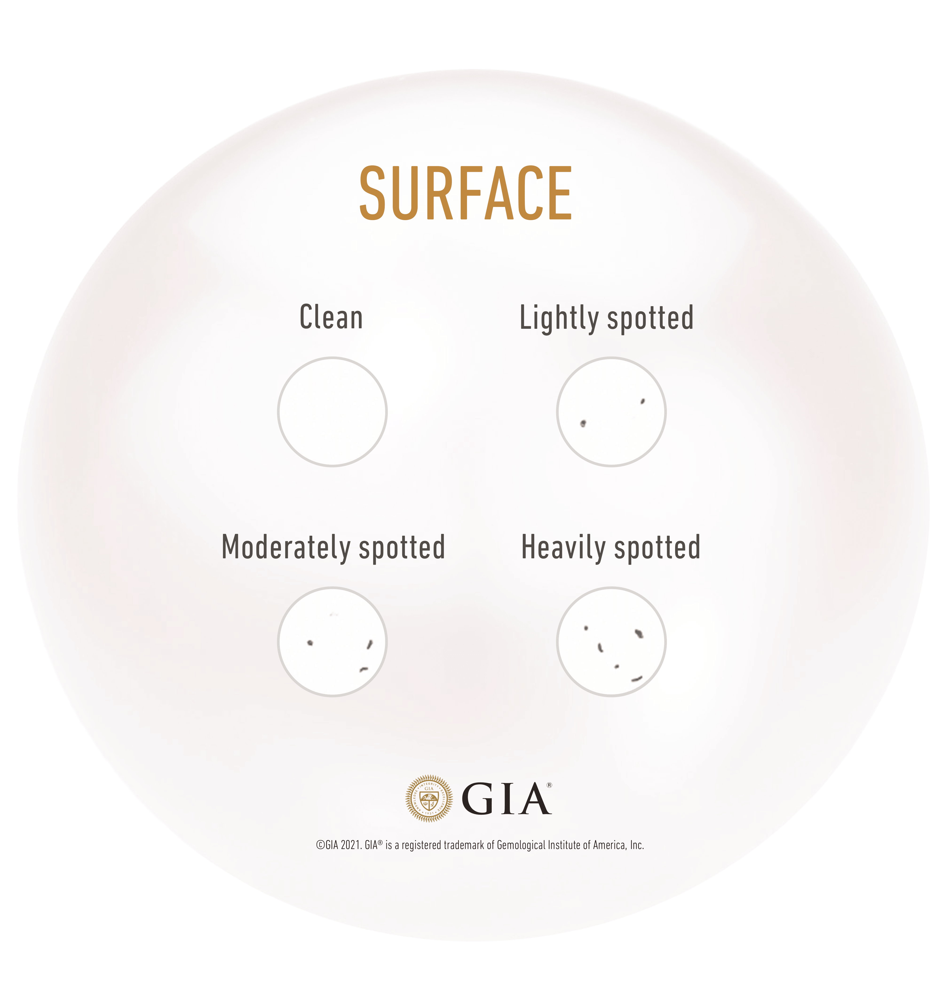 - Surface Quality: Blemishes or irregularities confined to the pearl’s surface, taking into account the size, number, nature, location, visibility, and type of surface characteristics.