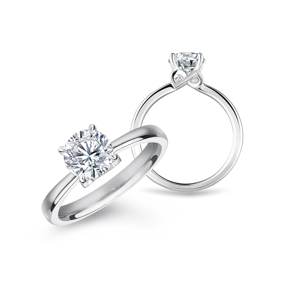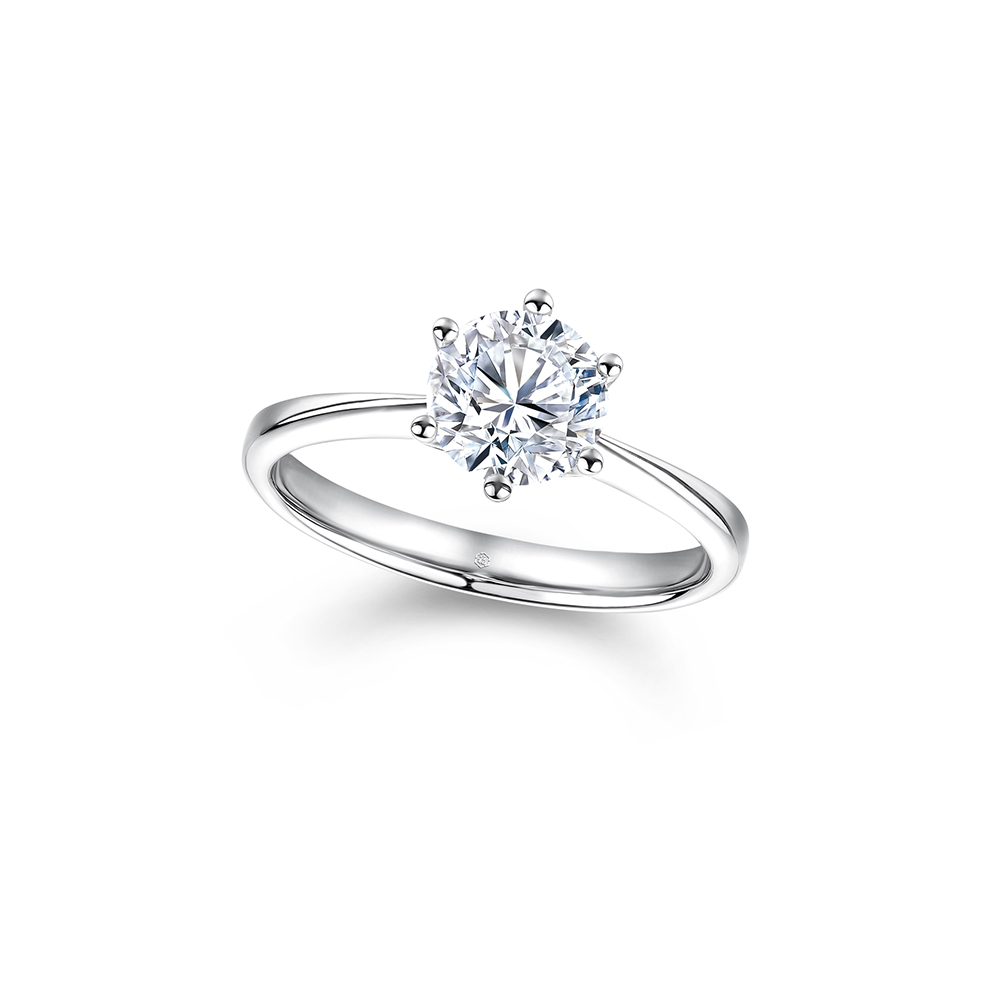 A brilliant diamond in a classic six-prong setting, coupled with a sleek band, creates a timelessly elegant look to honour the promise of true love. | ||
