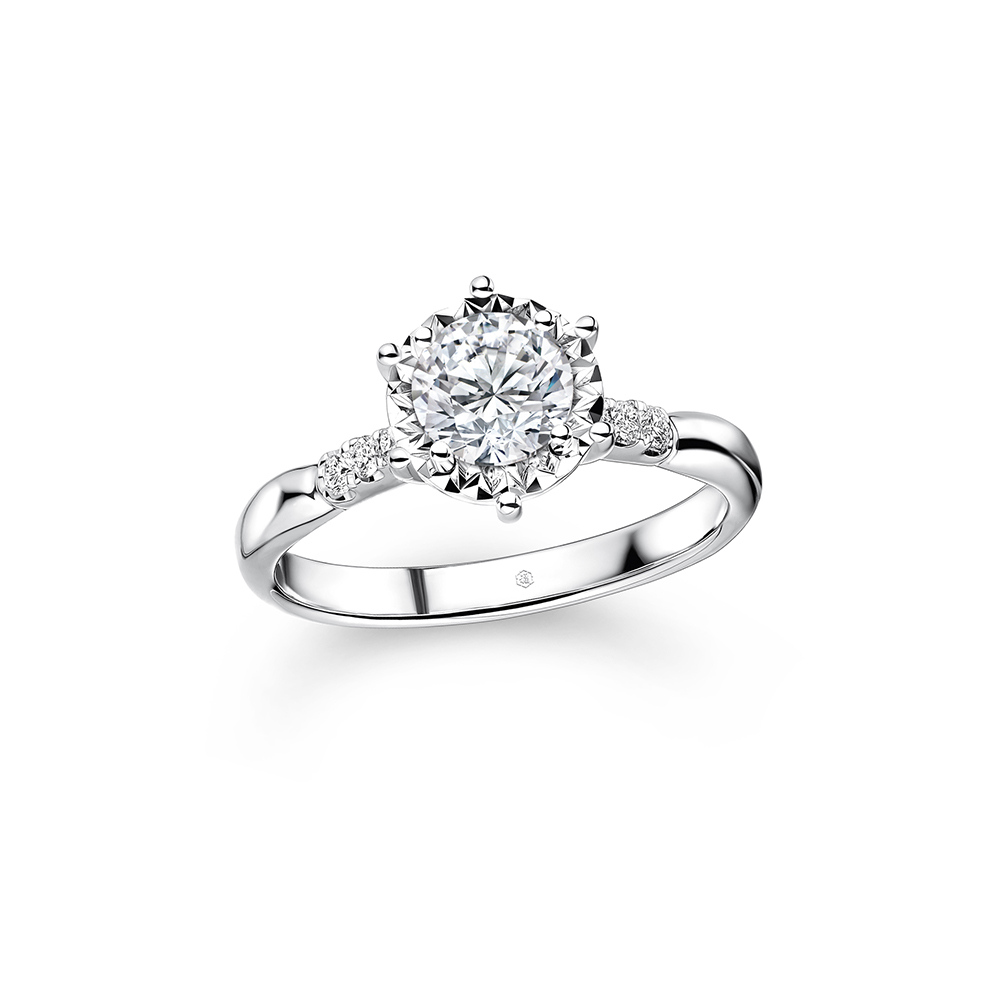 Love is like the sunshine that always warms the heart. The brilliant main stone is clasped by elegant heart-shaped prongs and surrounded by hearts on the side. Patented “Shiny Diamond Setting” enhances the glitter effect to illuminate the heartwarming moments of love, making the wearer radiate dazzling beauty and sweet romance.