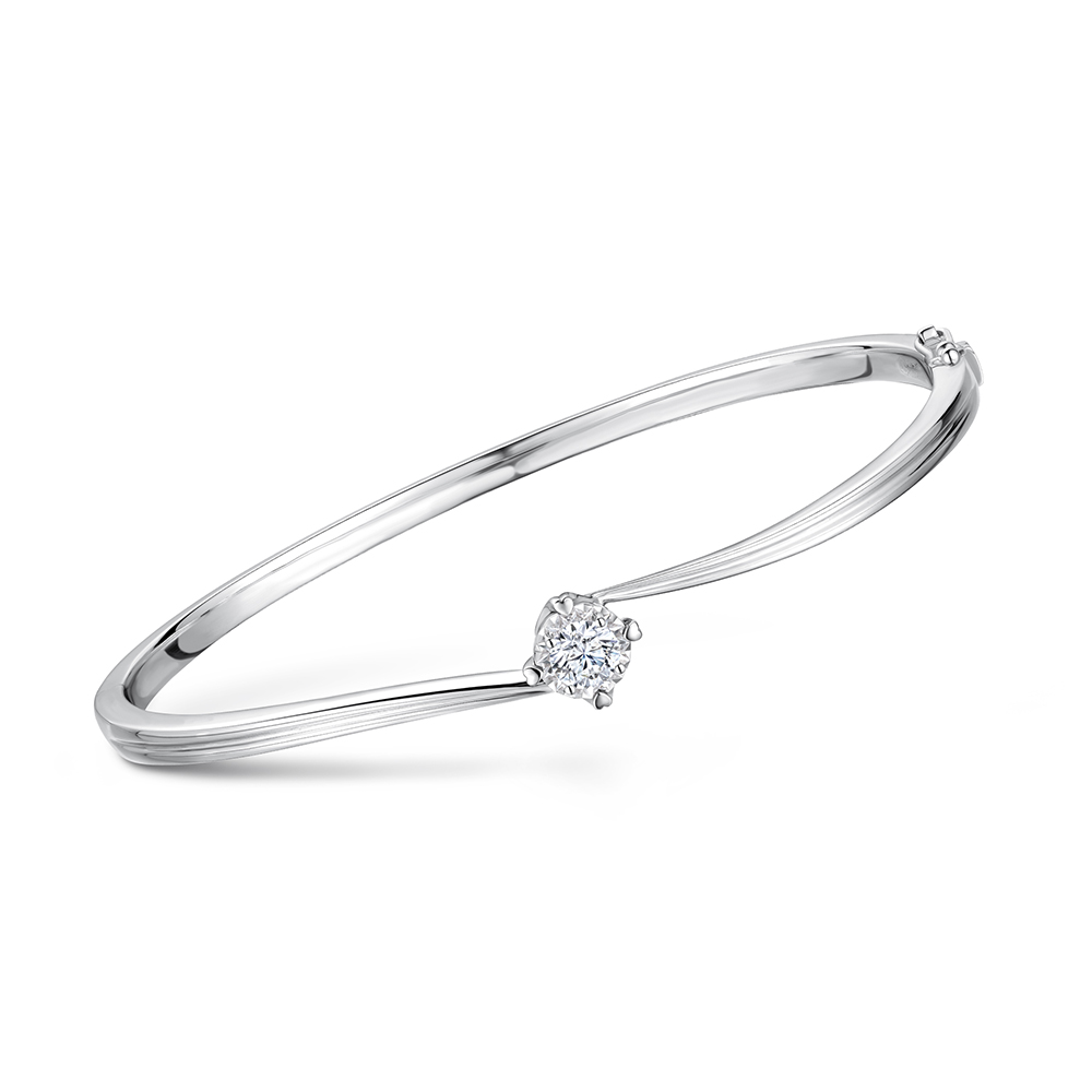 Enduring love is pure like water. The pure diamond, as clear as water, set in 18K gold sparkles with fire and brilliance to celebrate eternal love. Sophisticated “Shiny Diamond Setting” enlarge the main stone that radiates the sparkle of sweet love. Twisted design and fluid lines add exquisite beauty to the ring and bangle, revealing feminine elegance.