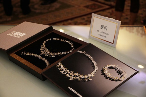 六福集團贊助名為「星閃」的18K金鑲鑽石彩寶項鏈及手鏈套裝,吸引了全場眾多嘉賓的目光。是次競投非常踴躍,底價人民幣15萬元的首飾,經過多名善心人士之多輪競投,最後以人民幣42.8萬元的高價成功拍賣,成為當晚競投激烈之拍賣品。