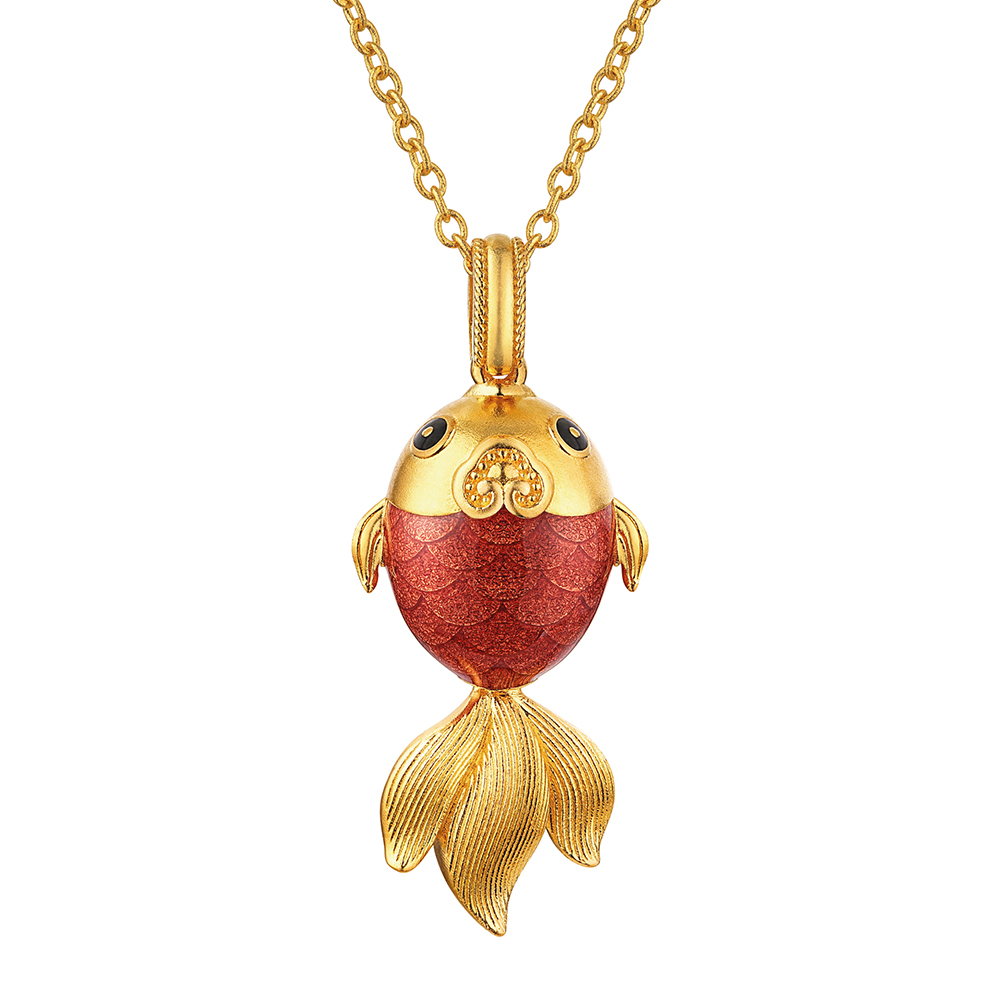 In the journey of love, some encounters are life's most precious gifts. Lukfook Jewellery reimagines the carp - a traditional symbol of good fortune - as a poetic testament to a romantic encounter. Drawing on the homophonic association between "fish" and "encounter" in Chinese, the design conveys a heartfelt message: "Meeting you is the greatest gift of my life". The carp is expertly crafted with antique gold and high-temperature red enamel techniques. Mineral pigments on the gold fish body are fired at high temperatures to create luminous glass-like lustre and warm, refined textures. Its scales are meticulously rendered with delicate details. Its flowing tail captures the dynamic grace of the carp swimming forward, evoking the undeniable thrill of love's arrival, the unwavering courage to pursue love, and the delightful surprise of having someone special find their way to you through the crowd. The vivid Tang-inspired hues and rich three-dimensionality visually embody the intensity of these emotions. This Valentine's Day, present it to the one who makes ordinary days shine. May you cherish, embrace, and find happiness always.