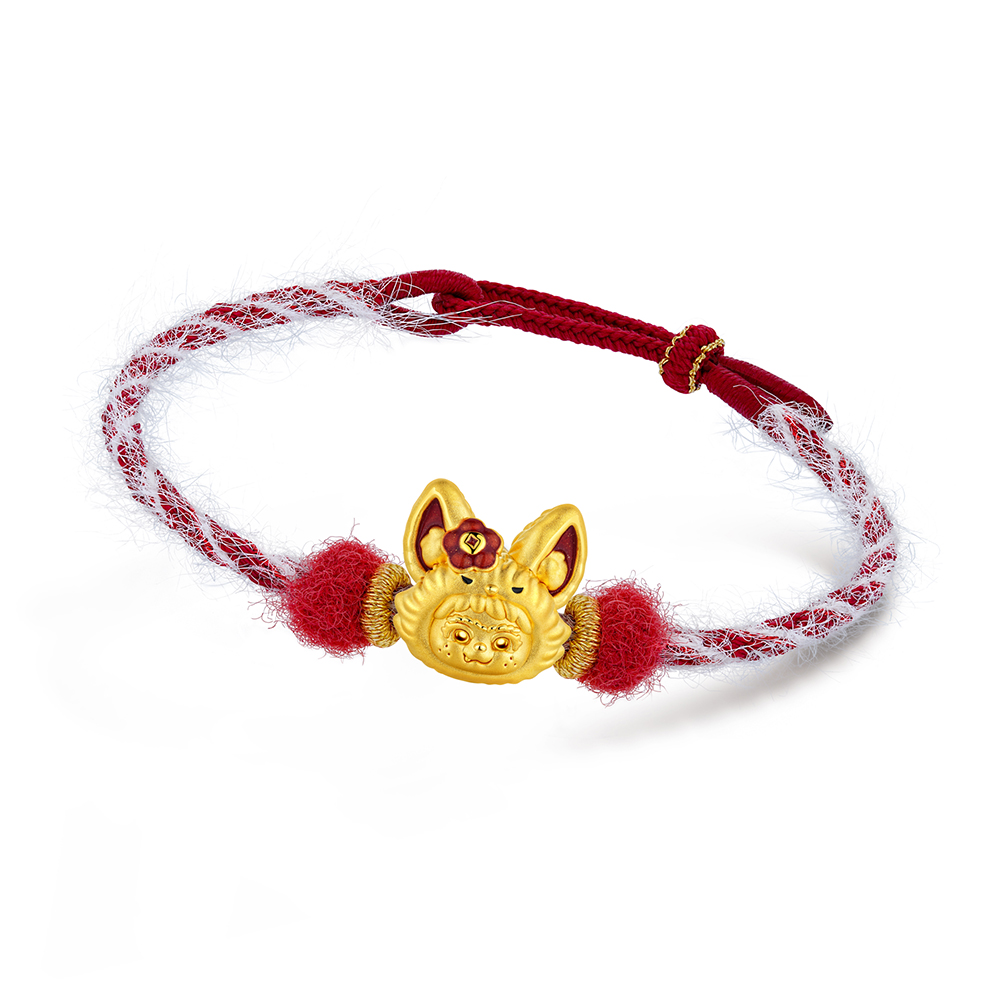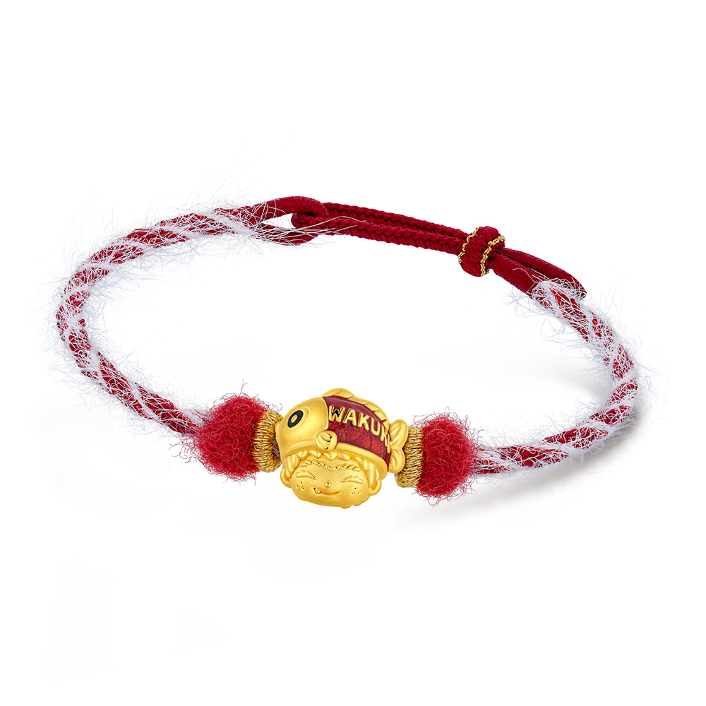 The WAKUKU Collection offers a selection of cute yet cool gold cord bracelets, with specially designed options in two distinctive styles - a plush cord bracelet and a cool cord bracelet - to cater to diverse preferences for personal expression and versatile styling. The plush cord bracelet is soft to the touch, bringing warmth and comfort in winter wear while perfectly complementing WAKUKU's adorable charm. The cool cord bracelet features a sleek design and a refreshing texture that highlights the exquisite craftsmanship and radiant lustre of the gold charms, ideal for versatile styling. The charms can be mixed and matched to create your signature look. Wear it alone to attract good fortune or stack them up to double the luck and joy. Define your own style and layer good fortune as you wish.