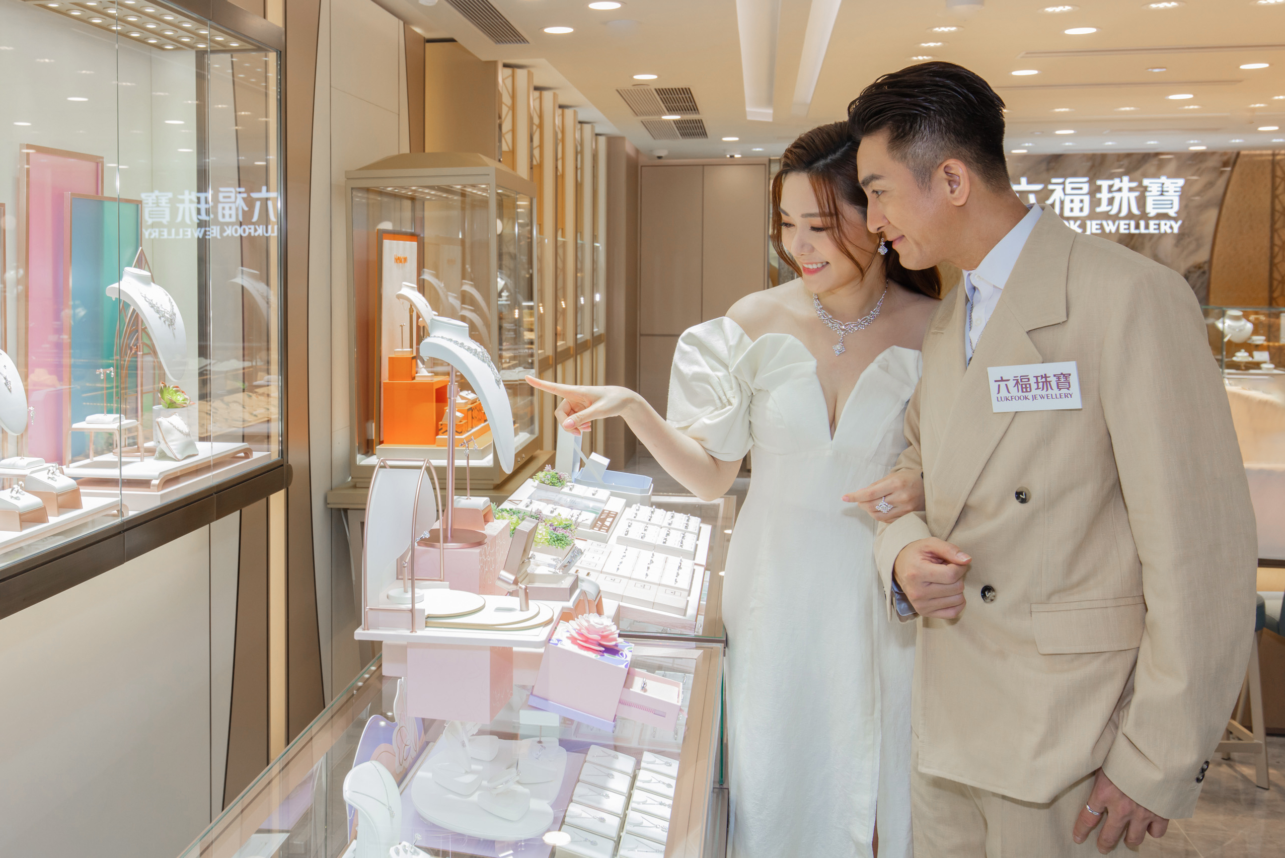 Lukfook Jewellery earlier opened a new image shop at Silvercord, a popular shopping mall in Tsim Sha Tsui, Hong Kong. To mark the occasion, Lukfook Jewellery held a grand opening ceremony for the new shop, and invited famous actor Mr. Kenneth Ma and actress Ms. Roxanne Tong as the star guests to officiate at the ribbon cutting ceremony together with the senior management of Lukfook Group to witness the new milestone in Lukfook Jewellery's business development. This marks Mr. Kenneth Ma and Ms. Roxanne Tong's first public appearance as a couple after the announcement of their engagement.