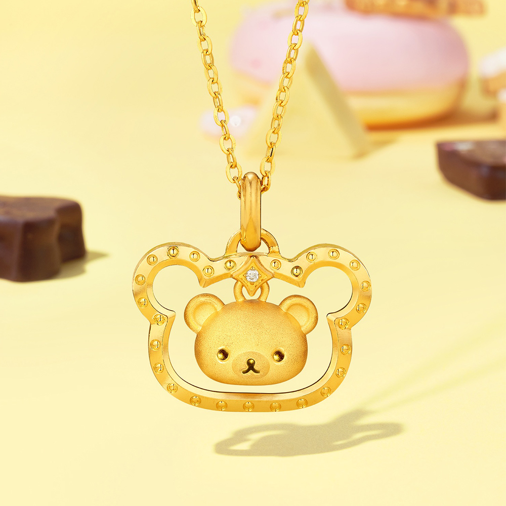 The lovely "Rilakkuma™ Goldstyle.X Gold Pendant" is meticulously designed with a brilliant diamond in the centre and a three-dimensional outline of the bear head, revealing the wearer's childhood innocence and youthful vigour. Featuring a blend of the Rilakkuma head and chocolate, the "Rilakkuma™ Gold Earrings" dazzle on the ears for a sweet, refreshing look. The "Rilakkuma™ Gold Charm Bracelet" incorporates the traditional lucky hoop into design to convey the best wishes in summer.