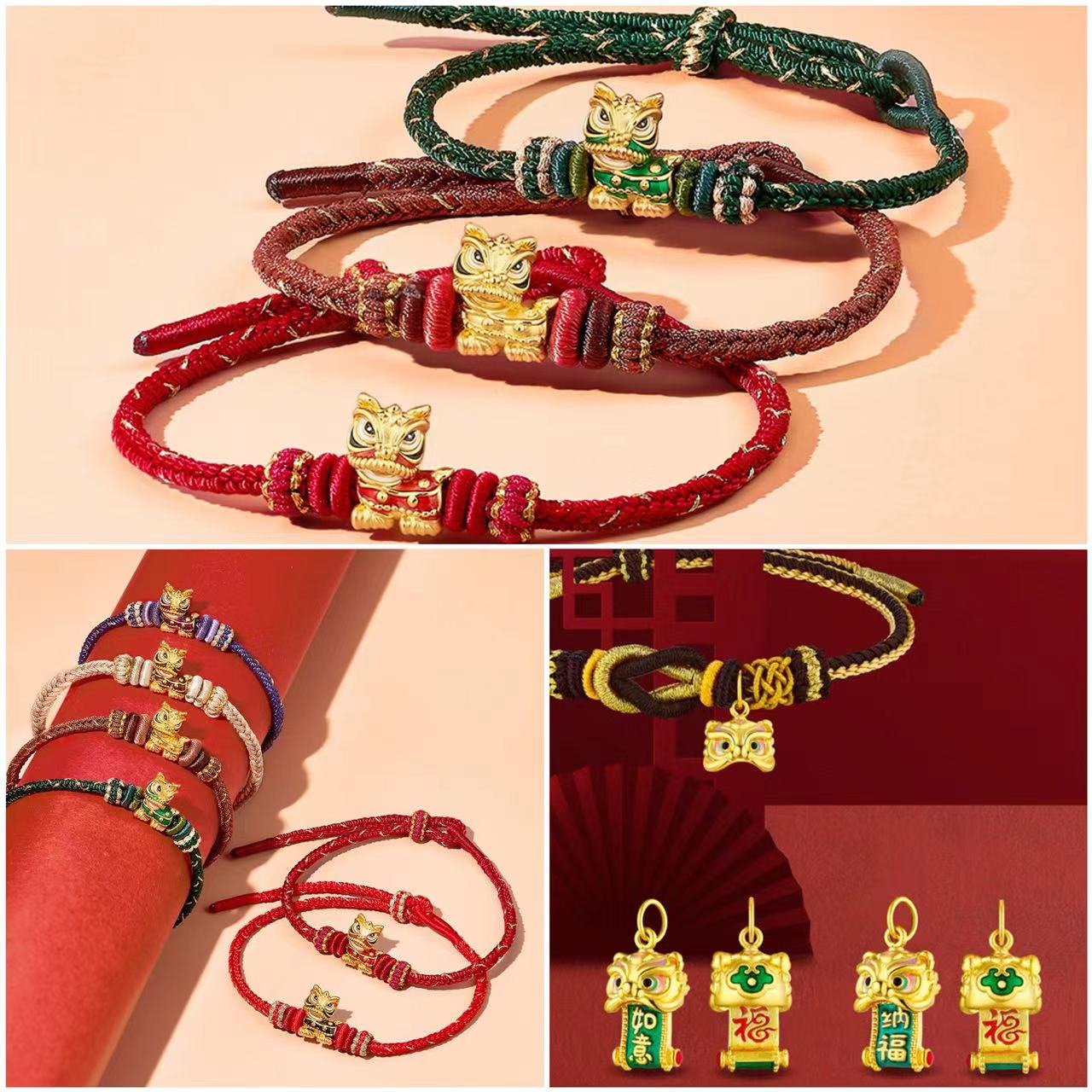 Auspicious animals herald good fortune in the new year. The brand new "Lion Dance" gold accessories fuse the majestic lion dance design with gorgeous gold to capture the essence of Oriental aesthetics and traditional culture. Detailed with colourful enamel embellishments, these vibrant "Lion Dance" pendants and charms are available in six different symbolic colours, demonstrating the new China-chic fashion trend. "Lion dance" in Chinese sounds like "peace and safety", invoking the propitious blessings for luck and fortune.