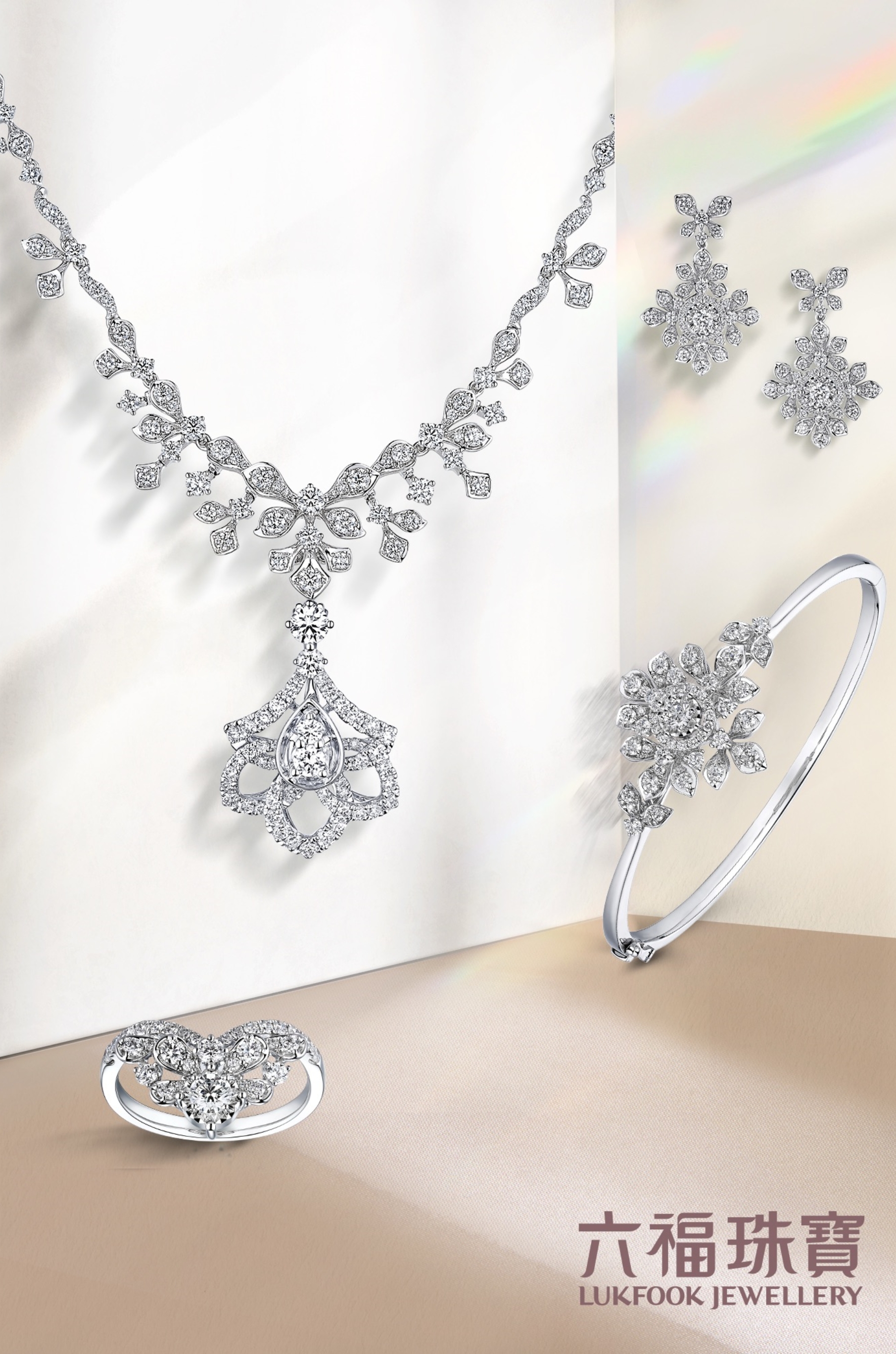 The meticulously crafted "DiaBling Rose" gold jewellery set features openwork rose designs with a striking three-dimensional and layered effect. The new-generation of radiant colours finish enables each exquisite petal to radiate diamond-like sparkle, offering a fresh take on your seasonal styling. The gorgeous diamond jewellery from the Wedding Collection fuses the shine of stars into the floral design. Shiny diamond setting creates a halo of radiant light around the main stone, adding sparkle to blissful moments. A poetic blend of luminous glow and diamond sparkle shines around the neck. The necklace can be paired with a variety of diamond pendants or pearl diamond pendants or worn alone to effortlessly accessorise different styles and looks.