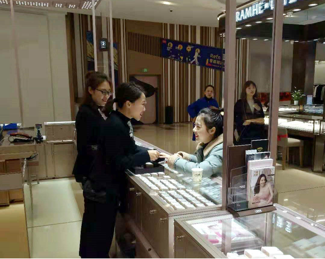 圖片4:專櫃銷售人員悉心為顧客提供試戴服務