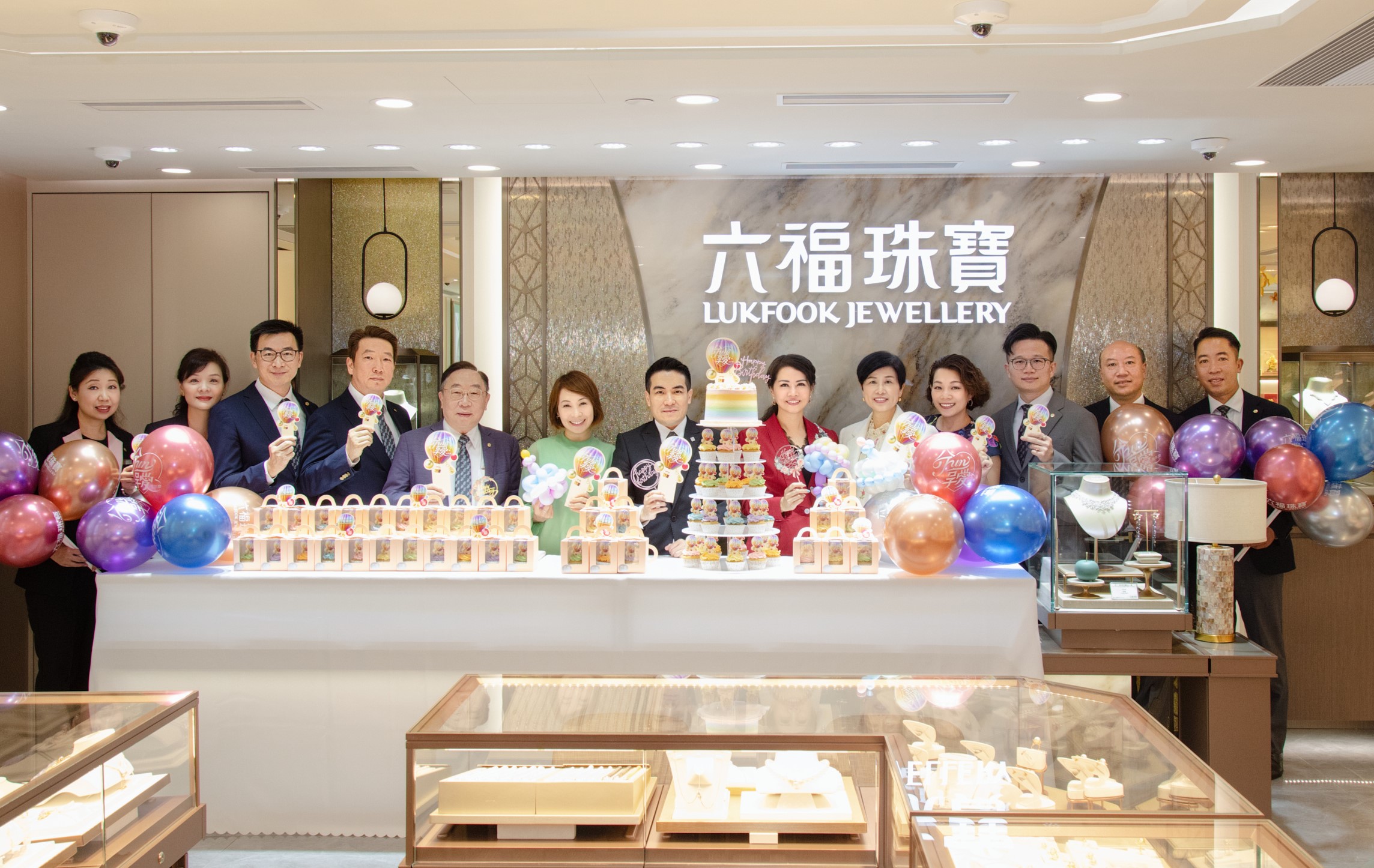 1 September marks the anniversary of Lukfook Jewellery. The management of Lukfook Group earlier hosted a cake-cutting ceremony at the image shop in Silvercord, Tsim Sha Tsui, Kowloon, Hong Kong S.A.R. to celebrate the anniversary of Lukfook Jewellery, and distributed the cupcakes printed with the words "Share Love and Fun" to customers and the public to share the joy with them. Wish Lukfook Jewellery a future as bright as the colourful hot air balloons.