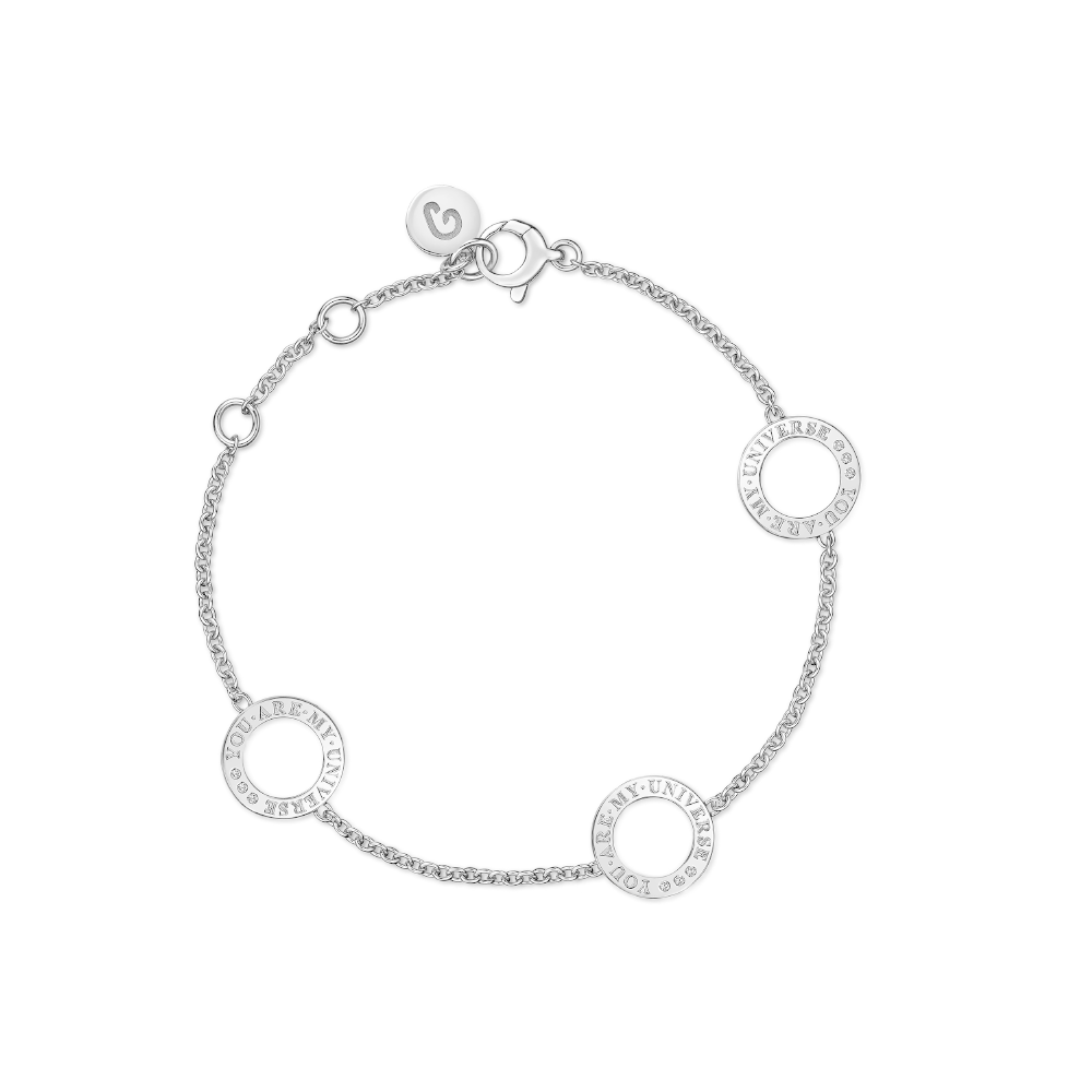 The 18K white gold Orbite III diamond bracelet takes the three symbols of perfection. Three symbols of infinity. One declaration of love: "You Are My Universe". The 3 diamonds on each Orbite symbolise the DIRCE 3 pillars.