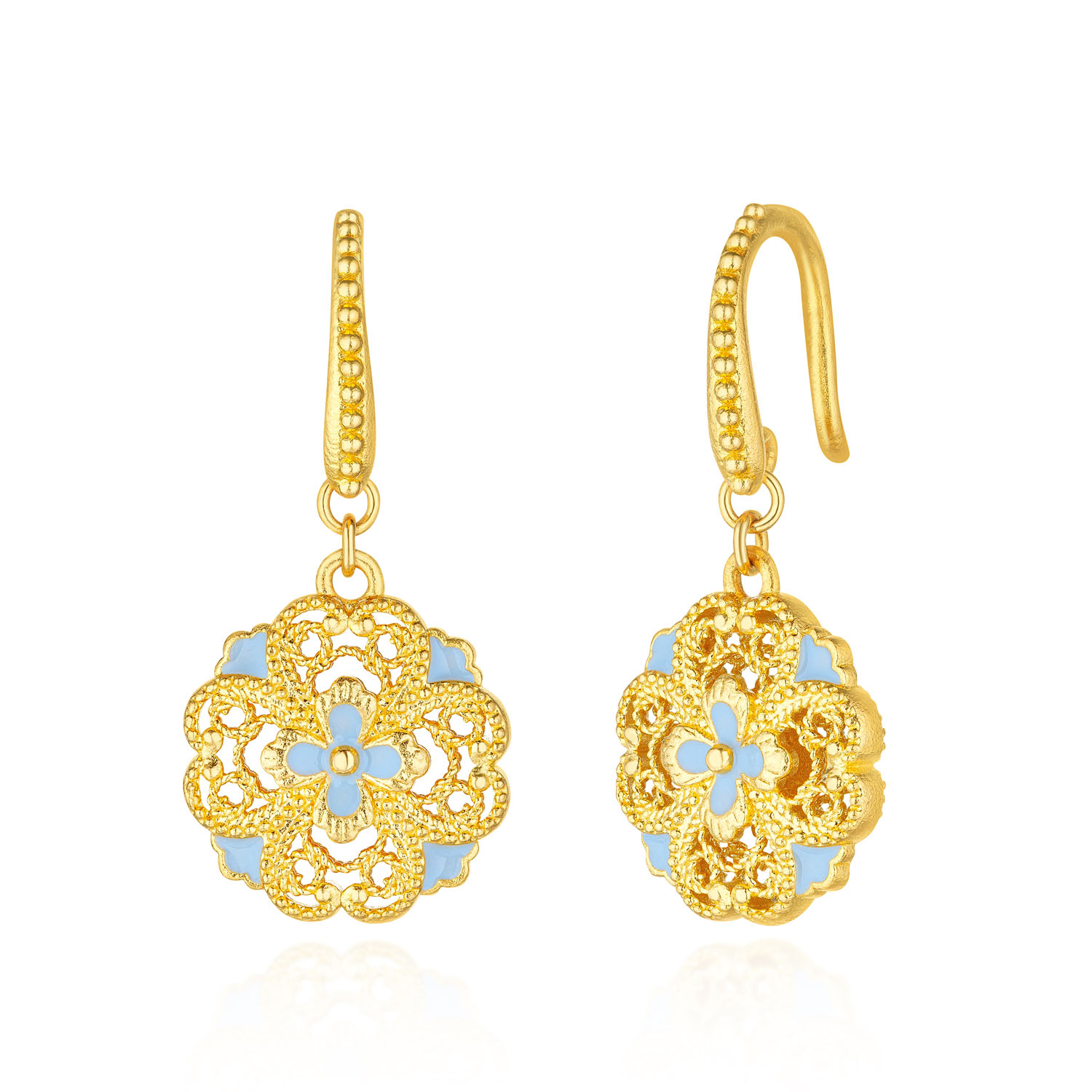 Heirloom Fortune - Charm of Song Dynasty Collection "Blue Floral Rhythm" Gold Earrings