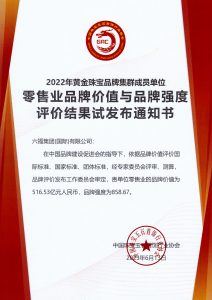 六福集团获评为 2022年黄金珠宝零售业品牌价值与品牌强度之前五位