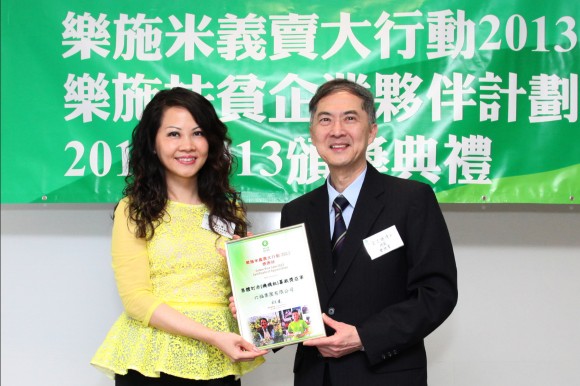 「乐施米义卖大行动」是「乐施会中国发展基金」一年一度的大型筹款活动,筹得款项将用于内地的扶贫和紧急救灾项目,帮助内地贫穷人士及改善弱势社群的生活。是次颁奖典礼于2013年7月19日在香港青年协会大厦举行,并由集团董事兼副总经理王巧阳小姐代表集团领取奖项。