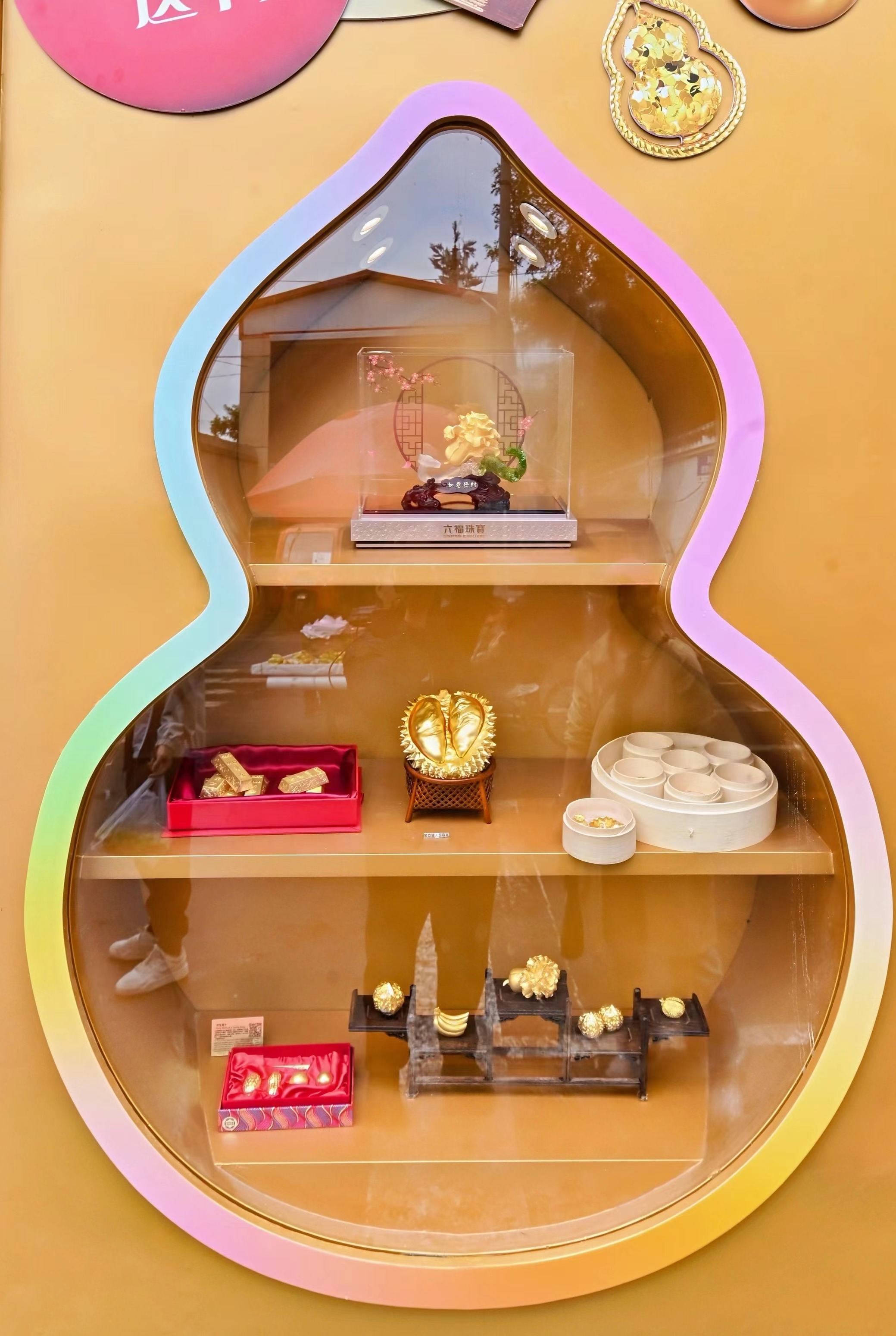 谁还不知道小河沿早市有黄金摊位出没?9月7日至22日,六福珠宝跨界打造 “Fun享福禄”限时店入驻东北第一早市——沈阳小河沿早市。金光灿烂的巨型礼盒震撼吸睛,缤纷炫彩的宝葫芦“破盒而出”,宛如“天降福禄”,也似一份让人惊喜的礼物。“金”彩绚丽的早市限时店1:1还原网感黄金美食,让趣味十足的足金月饼、海鲜、点心、蔬菜、水果等走进现实,更融入早市氛围,限时限定卖出“早市价”,从热辣滚烫的人间烟火气到耀目生辉的足金更豪气!活动期间还有“炫金夺宝大挑战——徒手取金砖”活动,每日挑战成功前20名即可获赠六福珠宝精美礼品,还有更多“显眼礼”等你来解锁!