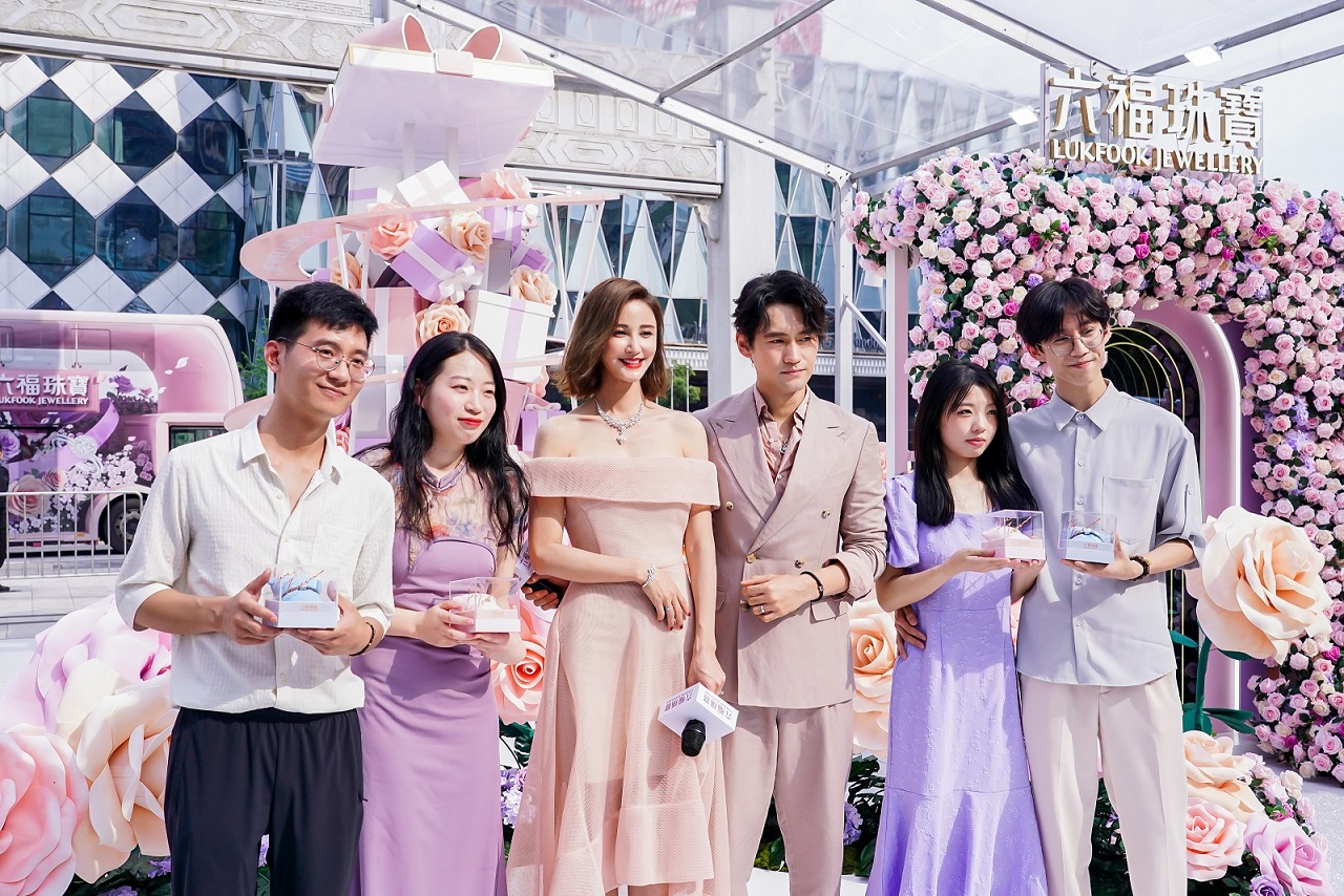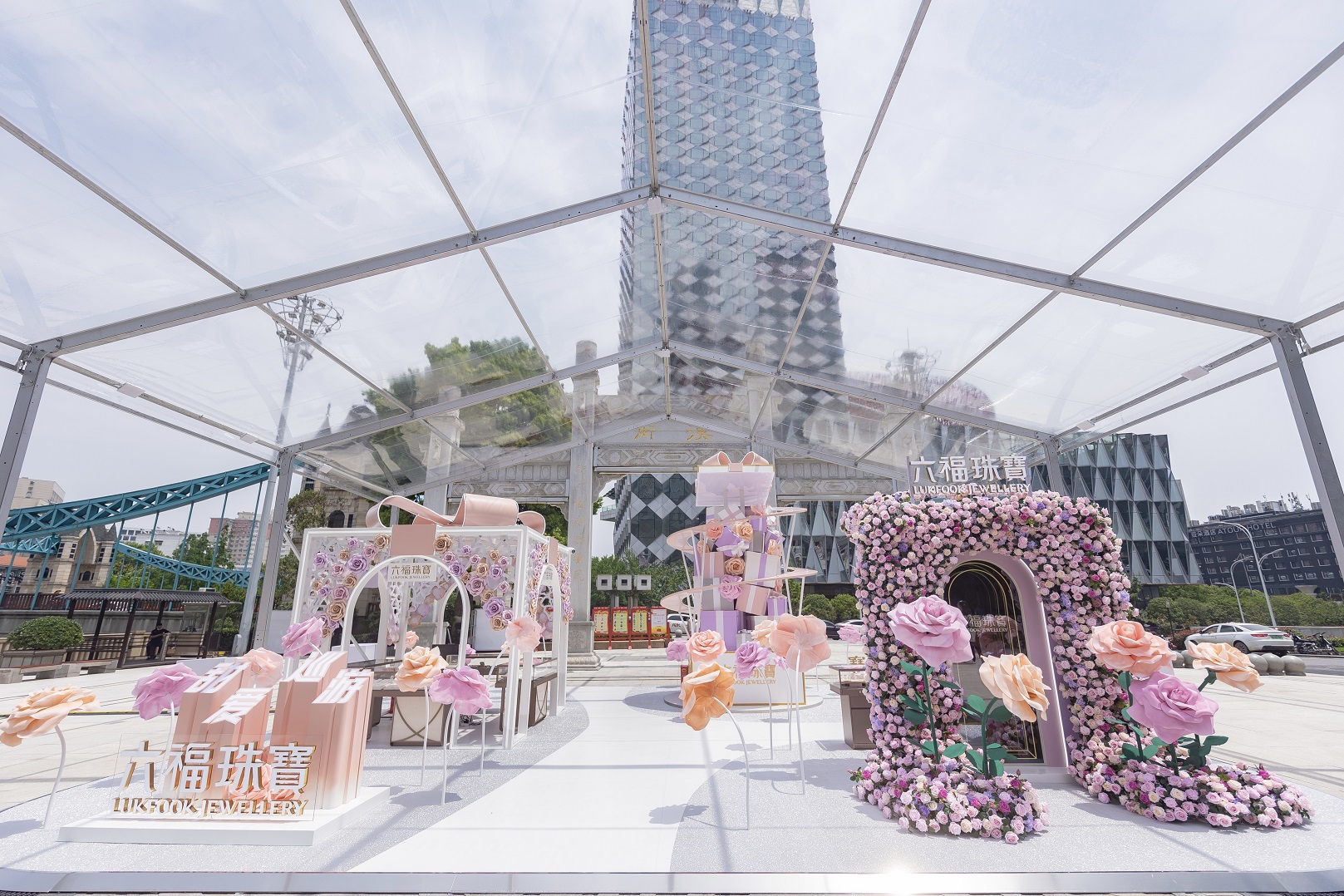繁花滢滢,爱意满盛。五月初夏,在浪漫的江城武汉,一起见证无尽花开无尽甜爱。六福珠宝520甜爱巡游·撒糖大会,于武汉时尚地标-楚河汉街甜蜜盛启,并于六福珠宝新浪官方微博开启同步直播,这个520让轰动全城的花式浪漫席卷全网,共享甜爱时刻。发布会现场以甜美的粉紫色调与烂漫的花瀑打造出芬芳肆意的梦境花园。六福珠宝甜爱大使袁弘张歆艺乘坐缤纷震撼的裸眼3D“甜爱专线花车”隆重登场,不仅开启甜爱模式,在线分享教科书式的爱情保鲜秘籍;更精心策划惊喜告白,为爱发 “声”,浪漫共频;并引领新婚夫妻参与撒糖挑战,解锁甜爱福利,一同见证爱意相萦的悸动分秒!