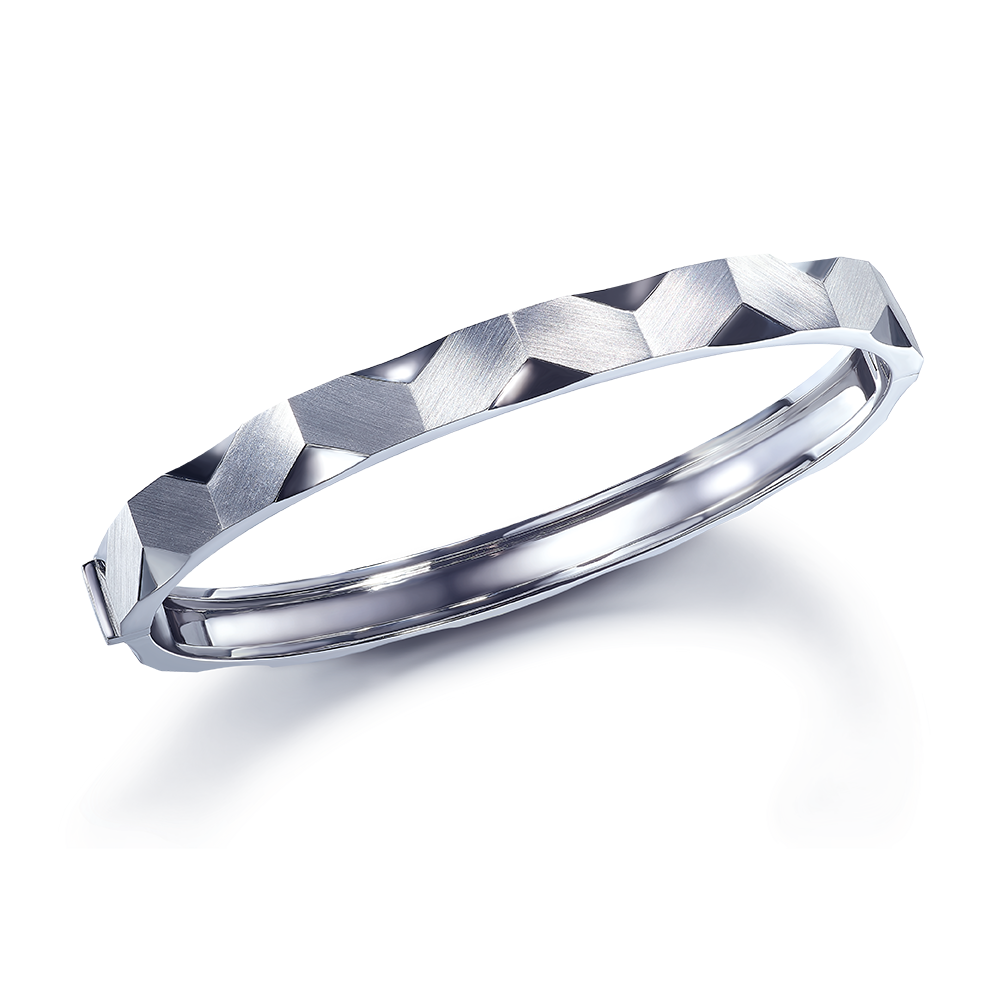 同款手镯及戒指均来自六福珠宝Hexicon,延续简洁多变的六角形为设计理念,融入立体几何元素,衬托摩登气质,演绎经典的时尚美学。