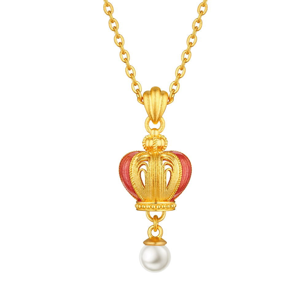 酷炫缤纷的多巴胺与传统黄金的美妙碰撞! 以柔美曼妙的黄金花丝细腻勾勒充满幻彩的后冠,一抹清新灵动的鎏彩搭配柔光盈动的珍珠,举手投足活泼灵动,释放源源不绝的多巴胺快乐因子,为你加冕甜蜜美梦,宛如集万千宠爱的快乐公主。