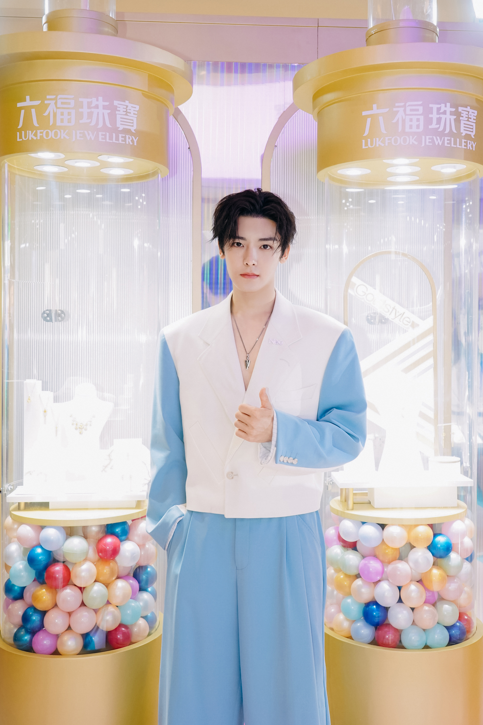 为庆贺这一重要时刻,六福集团执行董事兼副行政总裁黄兰诗女士从香港远赴而来,为六福珠宝FUN享爱大使侯明昊送上为其量身定制的 「Neo」 钻石胸针,见证品牌此次特别合作。此款胸针由62颗美钻镶嵌而成,是侯明昊与六福珠宝之间的璀璨印记。Neo字母描摹少年之名,钻石映射锦绣前程,26正青春,“昊”气风发,寄语侯明昊未来之路绽放璀璨光芒 的美好祝福 。随后,侯明昊开启欢乐探店模式,不仅沉浸式打卡多巴胺幻彩巡游快闪店,并抵达万象城六福珠宝店内,感受缤纷美饰的粲然时刻。