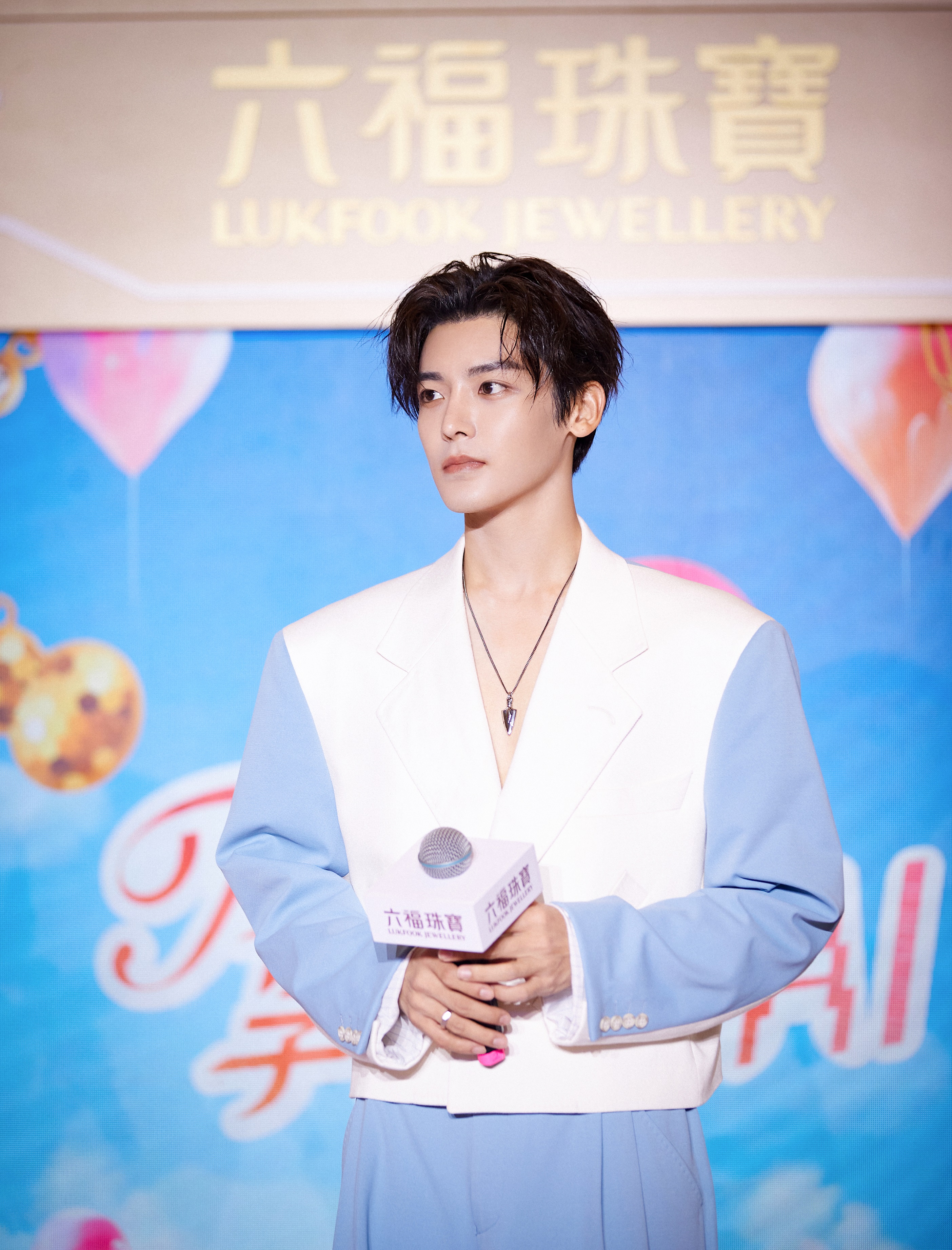 发布会当天,现场以炫丽的多巴胺配色与AI元素幻彩融合,构筑了斑斓璀璨的奇幻快闪空间。六福珠宝FUN享爱大使侯明昊帅气登场,身着别具设计感的蓝白拼色V领休闲西装,搭配时尚型格的铂金玄酷系列及Hexicon首饰,矜贵气质,魅力尽显。侯明昊与现场观众大方畅谈近况,时尚展示了潮范十足的型格穿搭,并分享首饰的佩戴心得。当被问及今日最吸引他的首饰,他表示是此次周年庆的主打款Goldstyle“闪爱悦动”足金项链,心形的设计,加上独特的3D钻石切割工艺,每个角度都闪闪发亮。高情商的互动回复为现场注入满满的活力与欢乐。