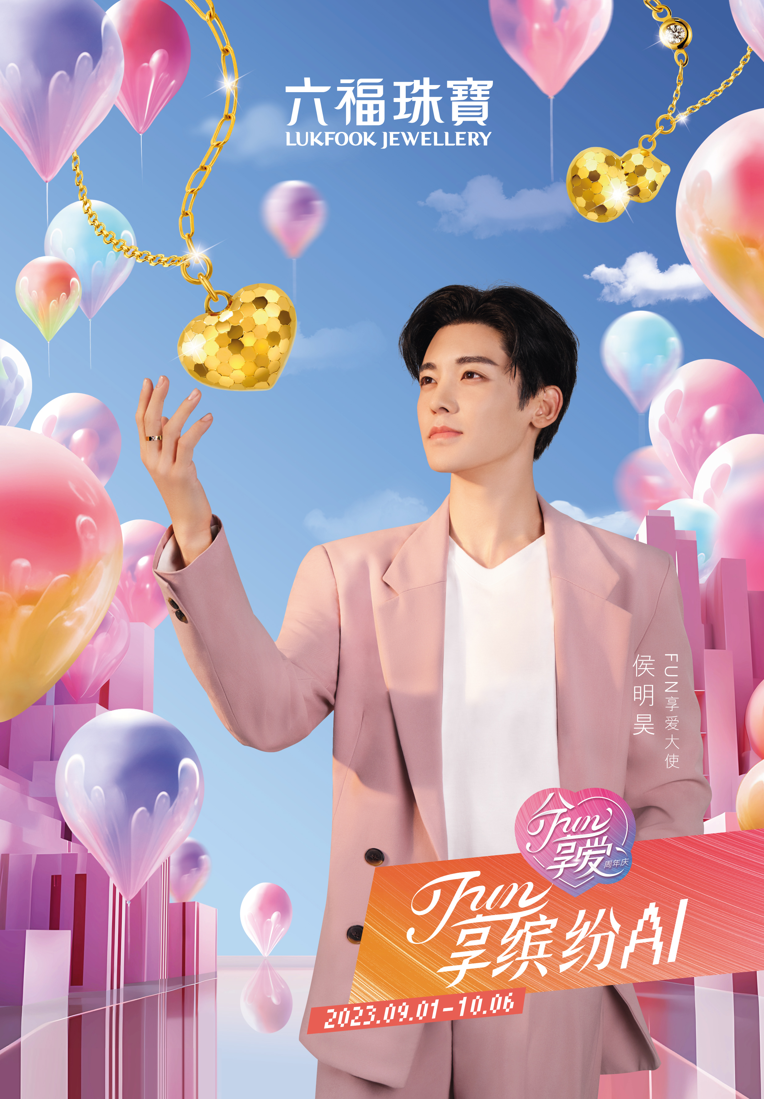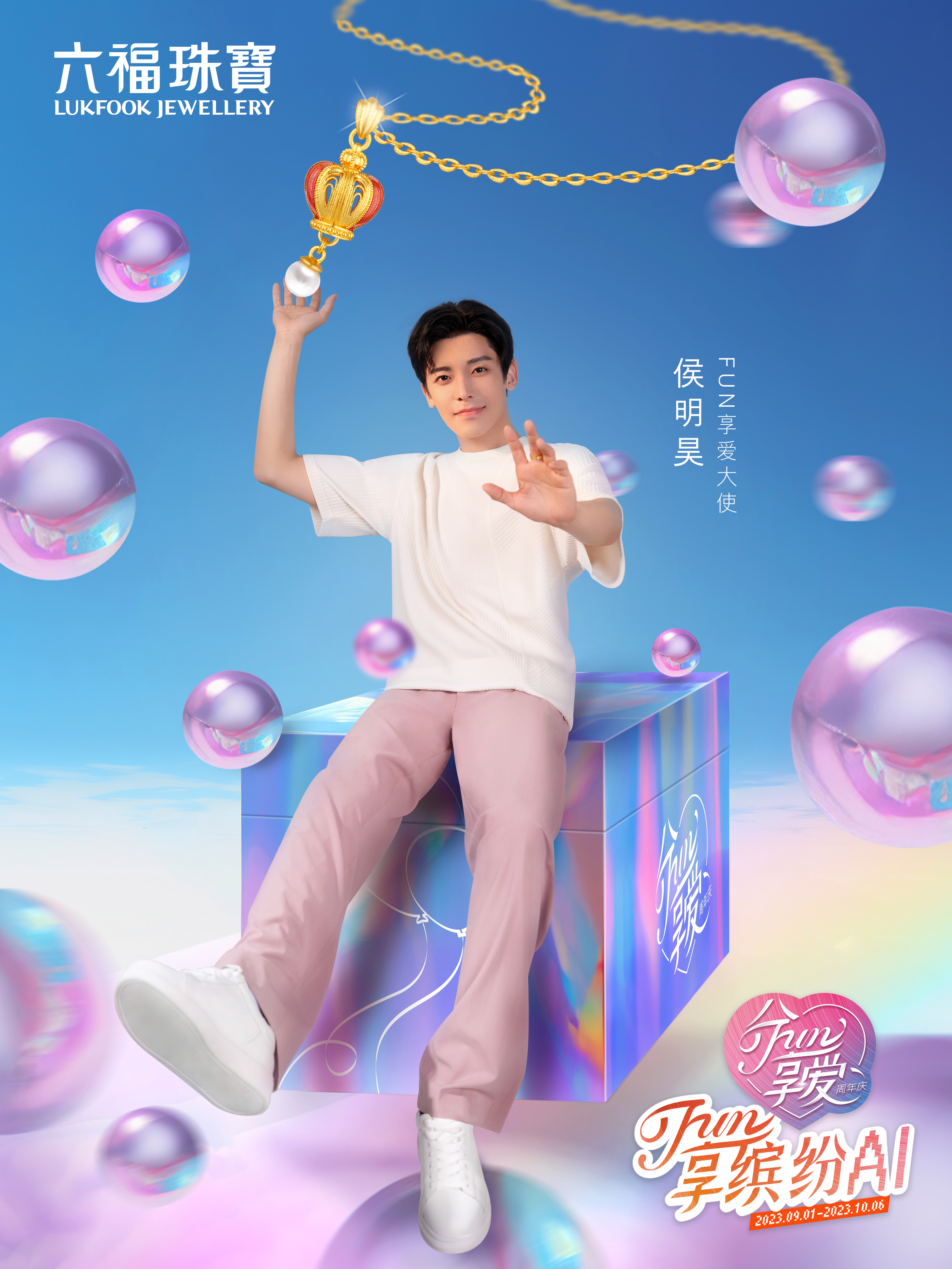 早前,六福珠宝特别邀请侯明昊担任FUN享爱大使,并拍摄生成一系列炫彩梦幻的AI广告照,以潮趣缤纷的欢乐视觉,演绎鎏光璀璨的绚烂之美。还有更多时尚广告照及珠宝持续曝光,敬请期待!