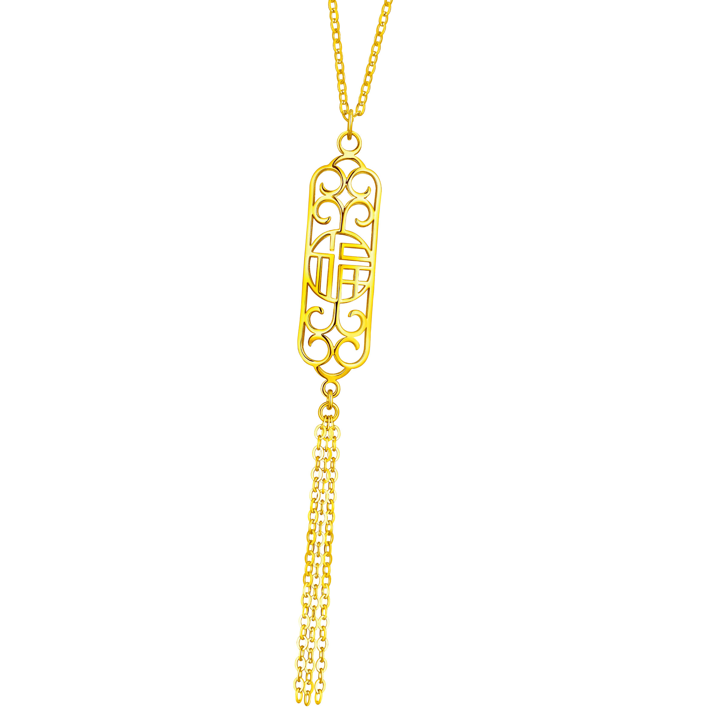 匠人们凭借一颗赤诚的匠心,把镂空的设计融入刻有「福」字的中国风灯笼当中,在古典而精美的镂空纹路勾勒下,让足金首饰犹如散发出阵阵和暖光芒,别具质感。愿为佩戴者带来「点亮前程,福耀一生」的美好祝愿!