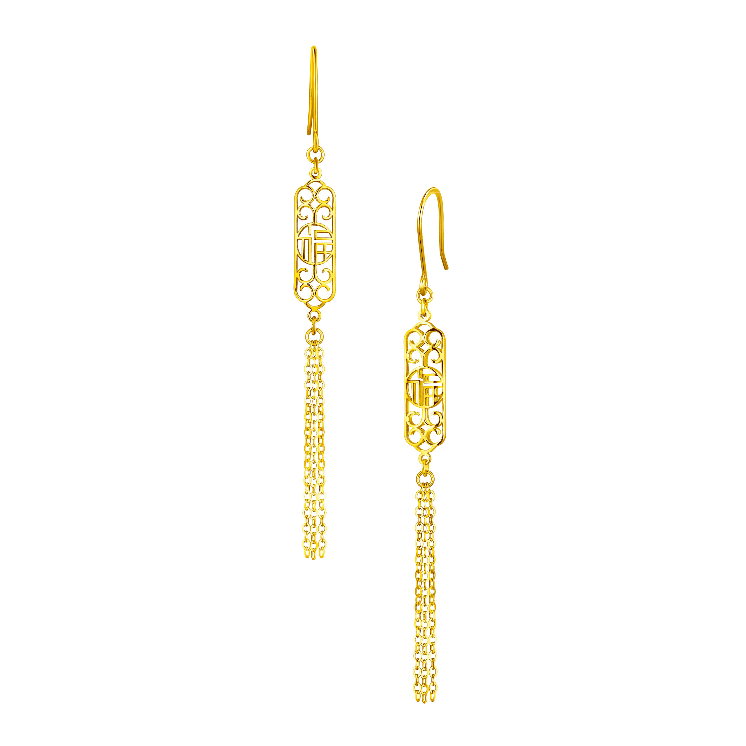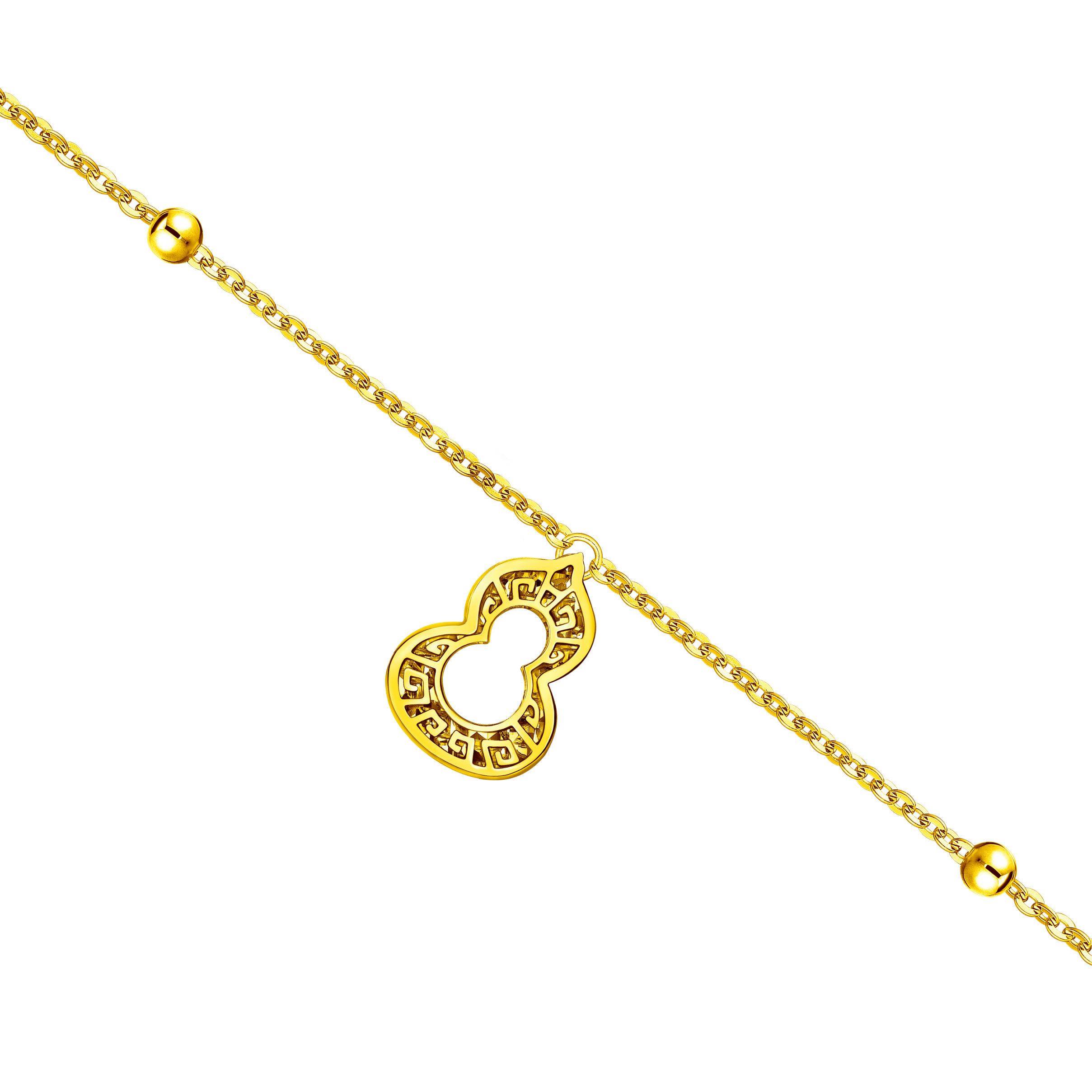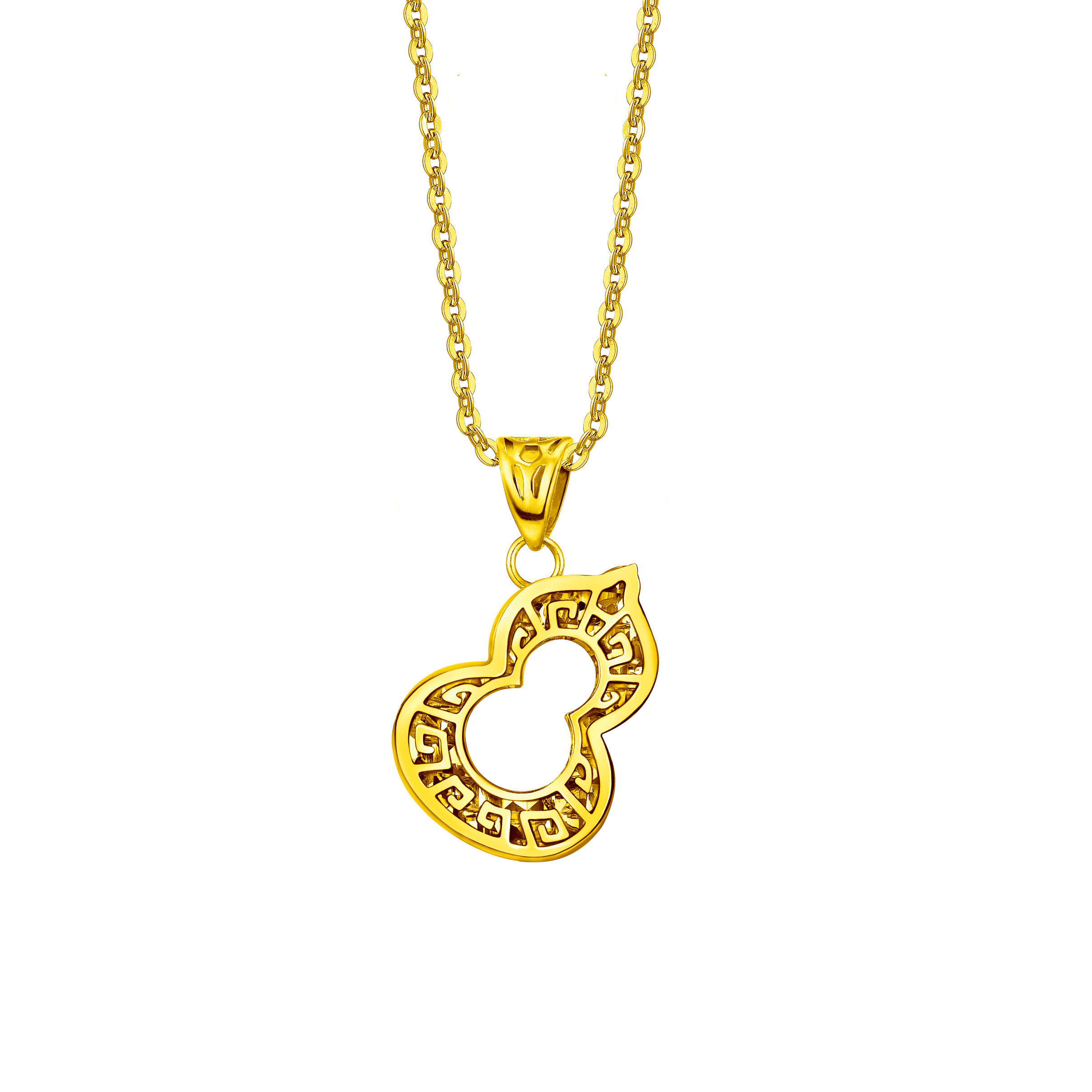 传统的葫芦造型因与「福禄」同音,带来福禄双收的美好祝愿。设计师在此基础上以吉祥回纹点缀更添满满福运,闪亮的金葫芦造型优美、精细别致,并配以卓越的车花工艺使足金饰品更加璀璨闪耀。展现喜气祥和的美态,愿佩戴者随身佩戴,时刻绽放华美光彩,更祈愿新年福运满满,「福禄」临门。